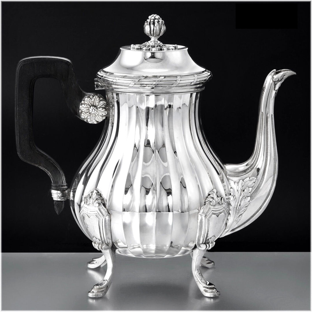 18世紀にはイギリスとフランスの銀細工職人はシルバーティーポットに流行していたバロックやロココ様式を反映するようになります。
