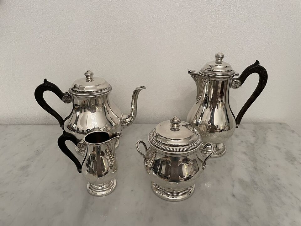 シルバーのティーポットセットに合わせて、ティーカップやデミタスカップ、