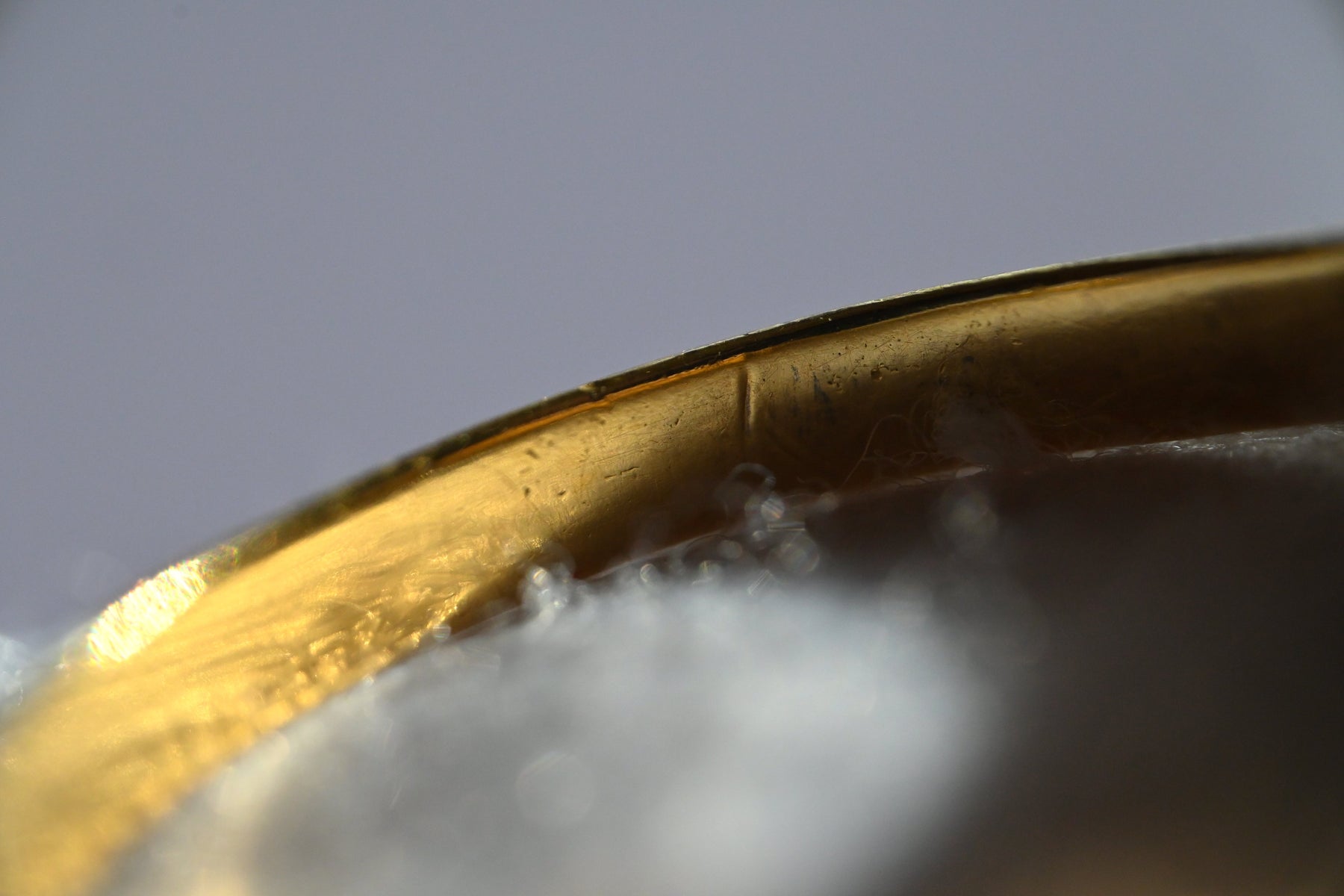 長い年月を経て、地金の角が取れ、肌に吸い付くように馴染む独特の質感は、アンティーク愛好家が「育ったゴールド」と称える至高のコンディション。