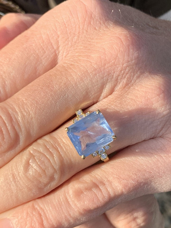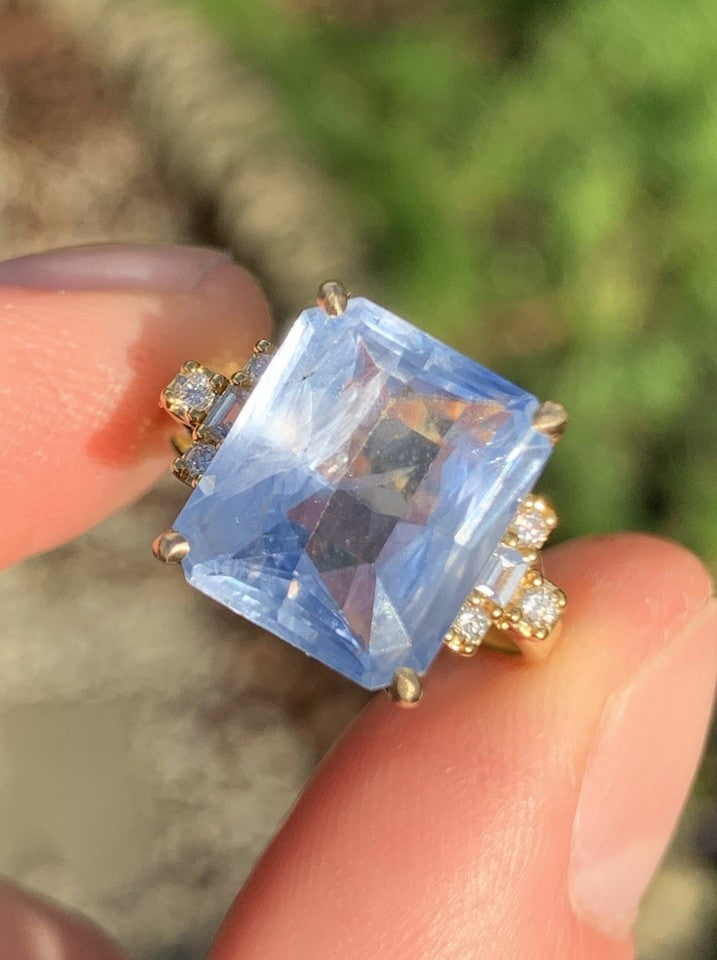 18金製 ダイヤモンド&天然無加熱サロンスパフィア8カラットの素晴らしいリングを販売いたします。