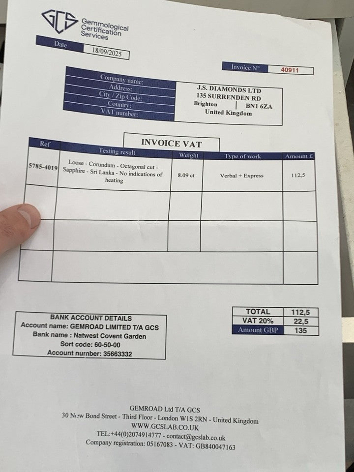 美しい色合いの無加熱サファイア8.09カラットが輝きます。