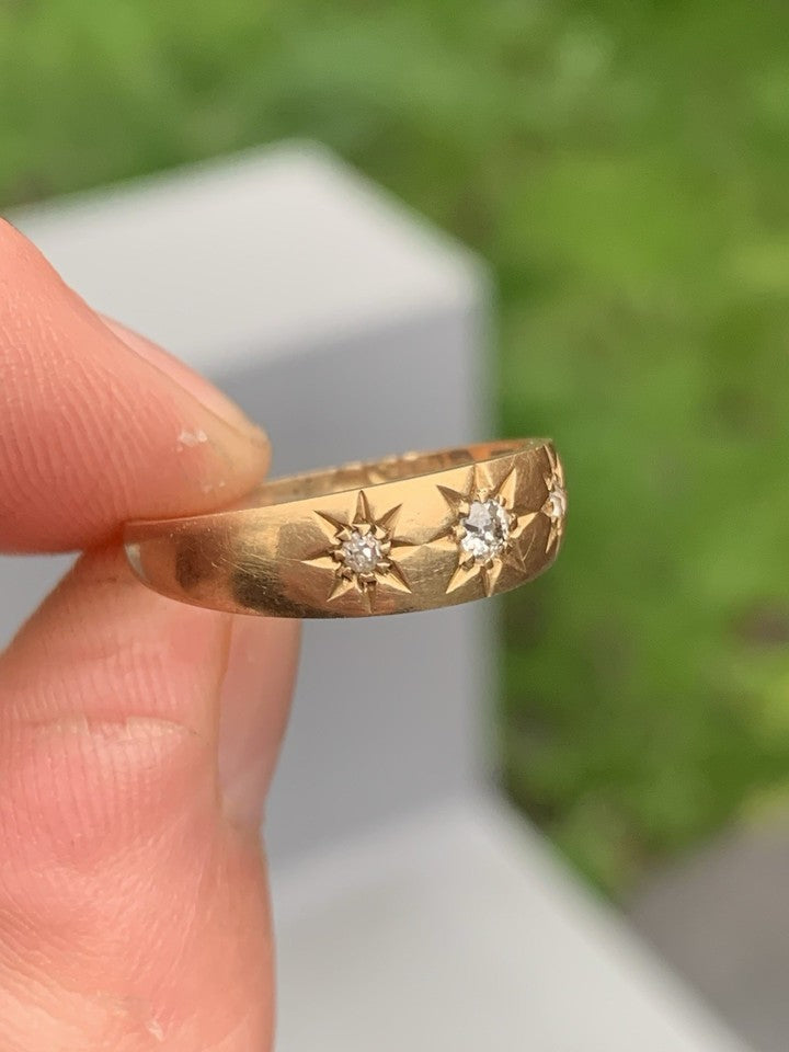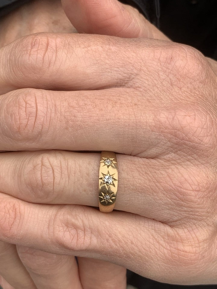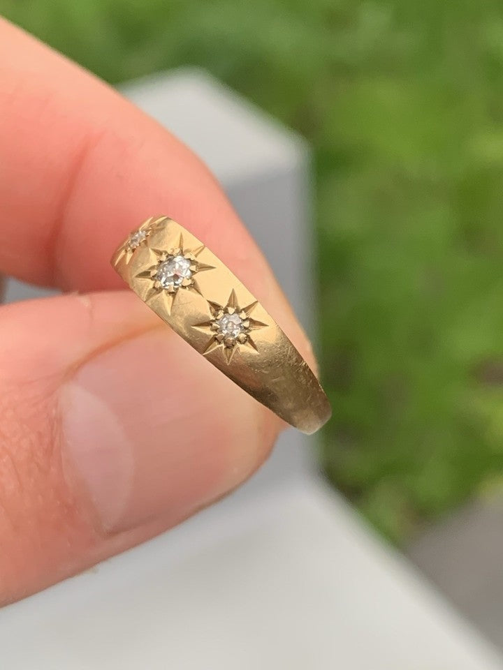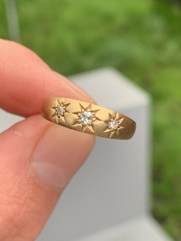 18金ダイヤモンド・ジプシーセット3ストーンリングを販売いたします。