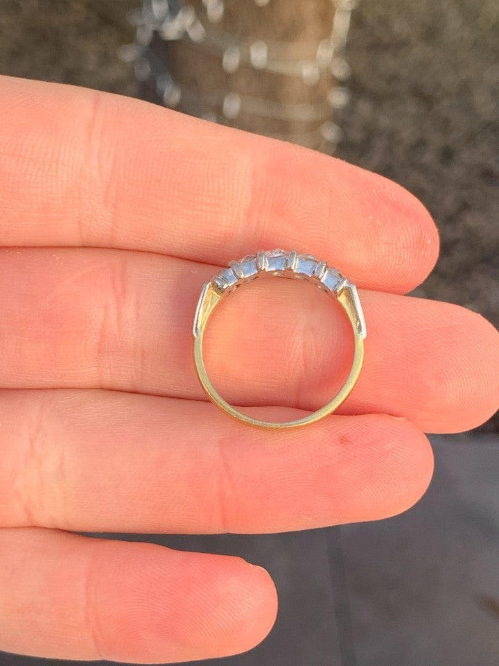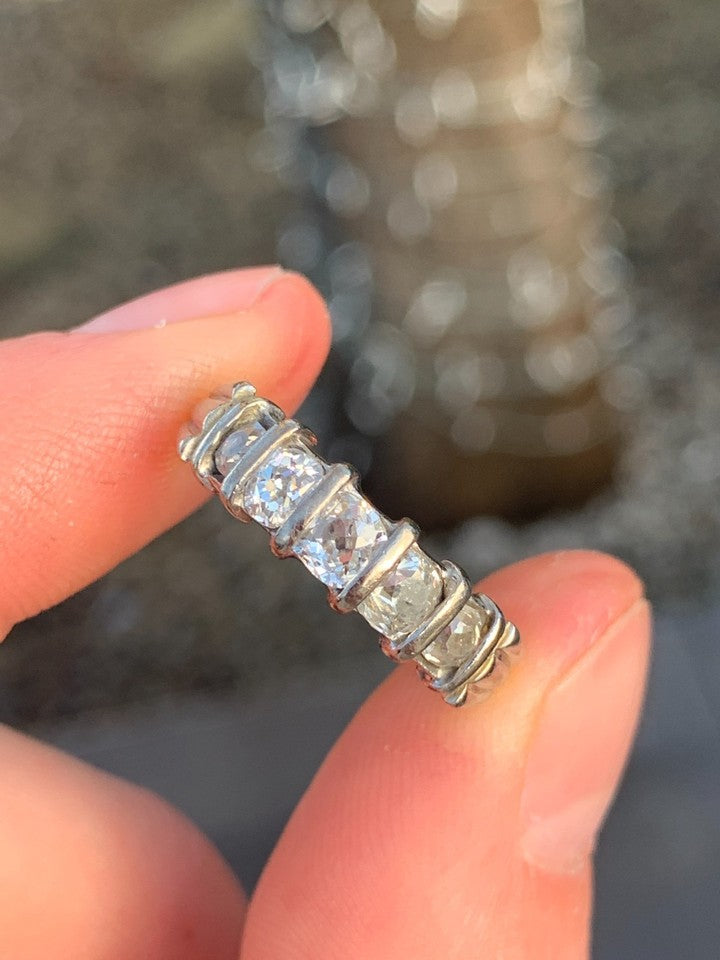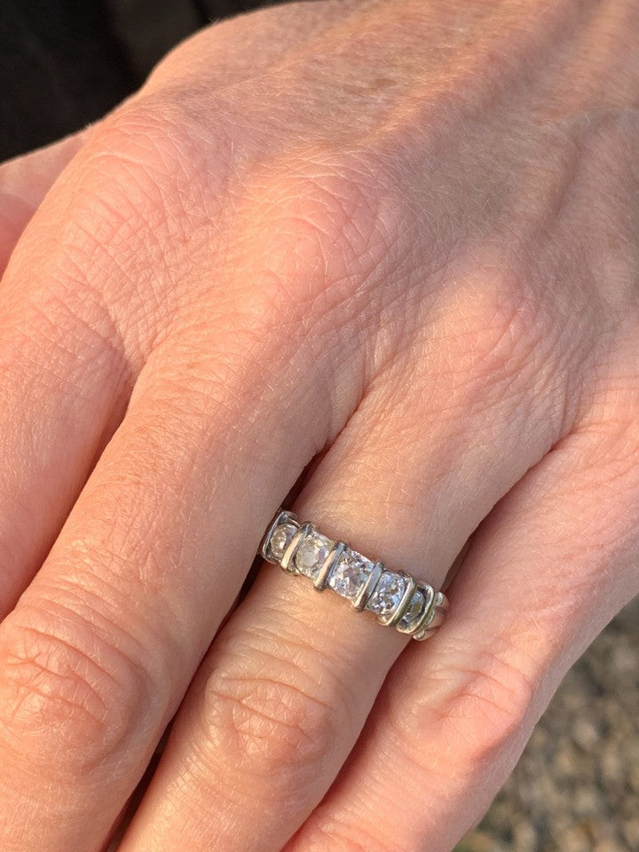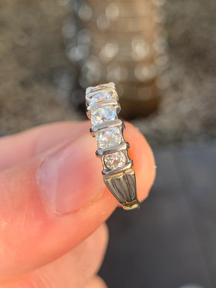 18金イエローゴールドとホワイトゴールドの刻印が入った、上質な18金ダイヤモンド5石オールドカットリングを販売いたします。