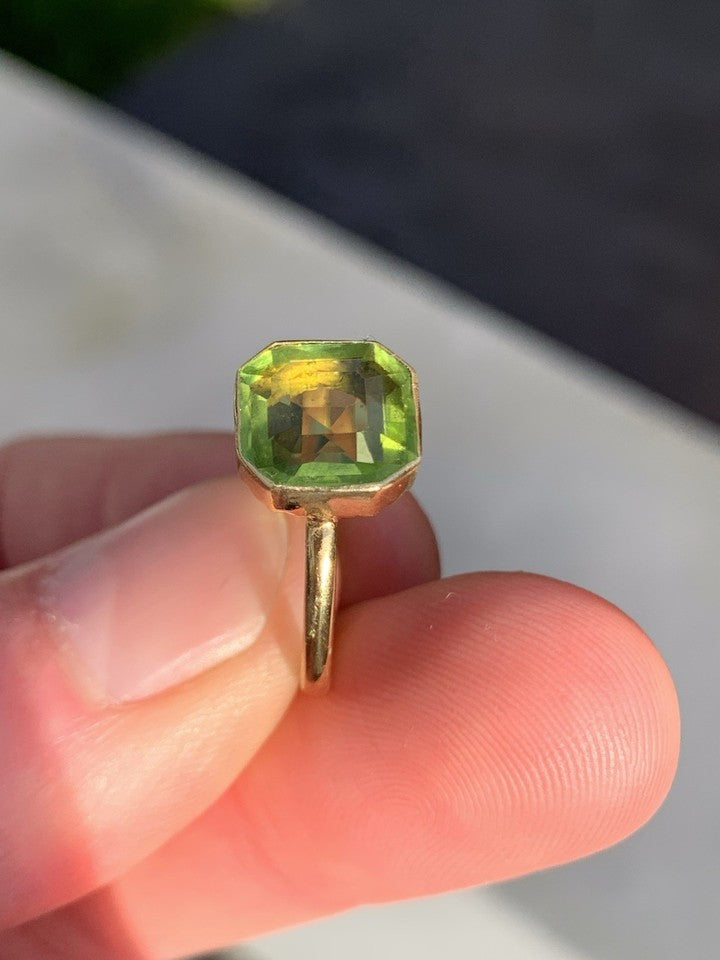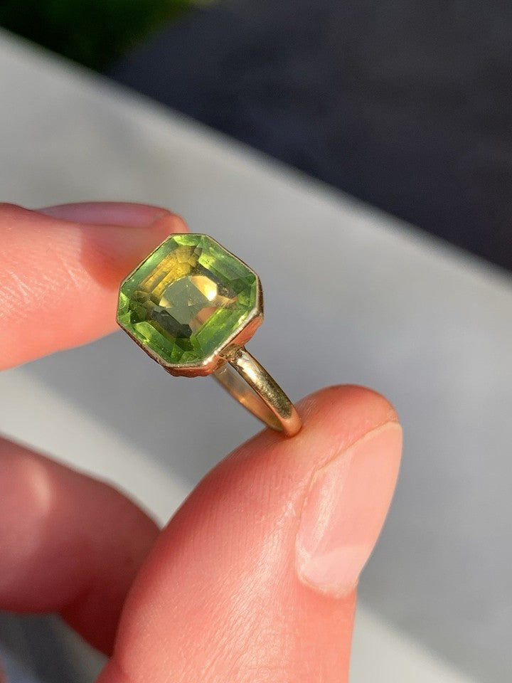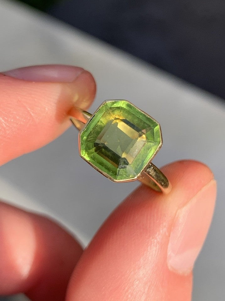 18金天然ペリドット3.00カラット アンティークソリテールリングを販売いたします。