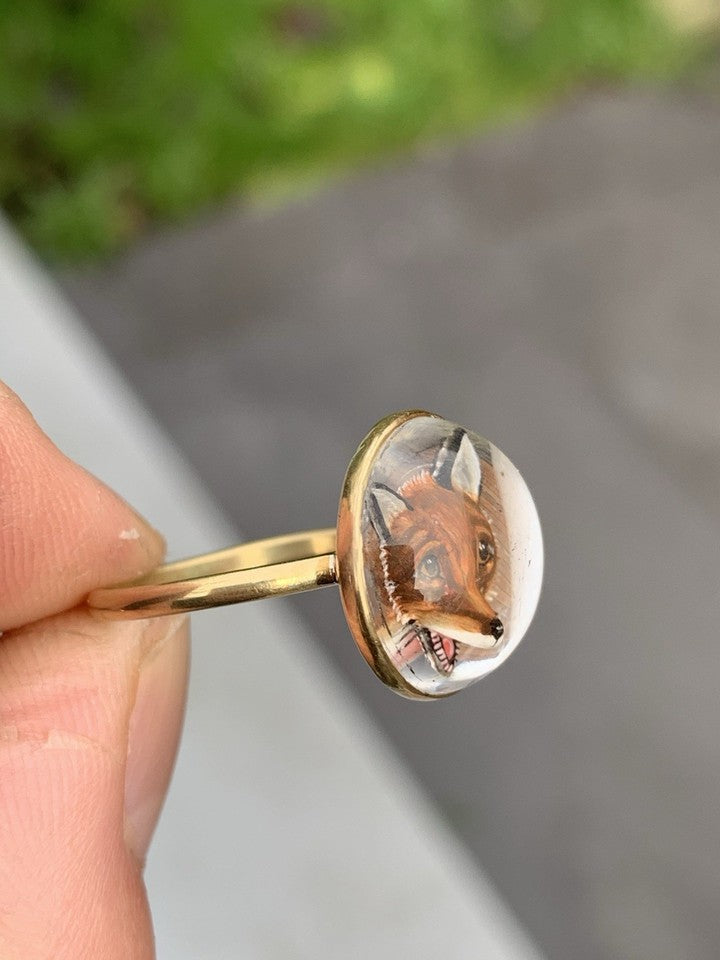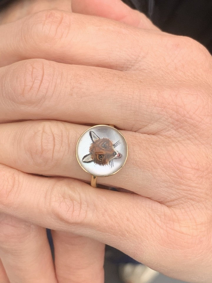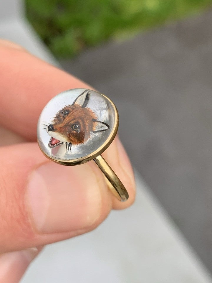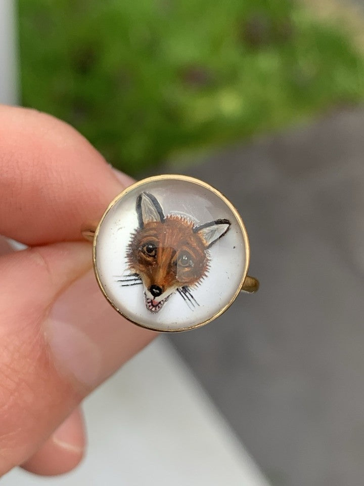 18金製ヴィクトリア朝時代の希少エセックスクリスタル製フォックスヘッドドームバックリングを販売いたします。