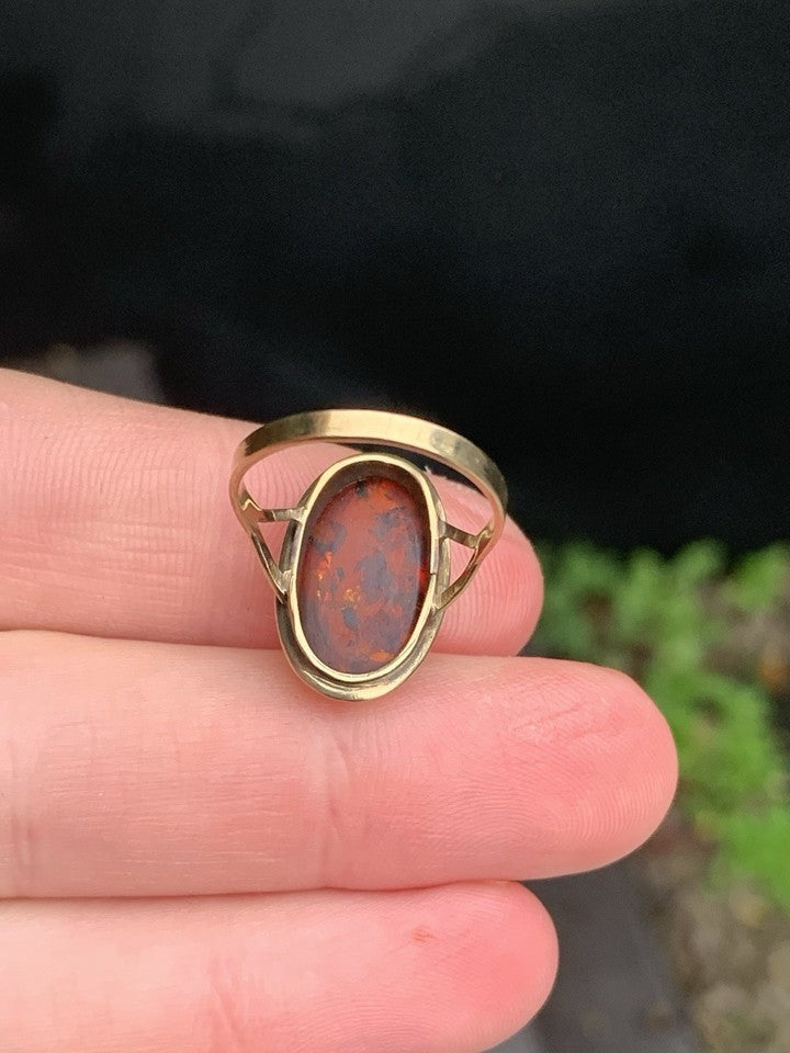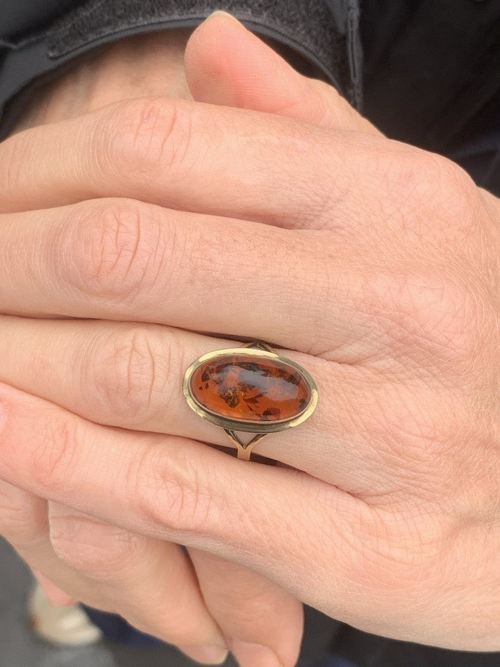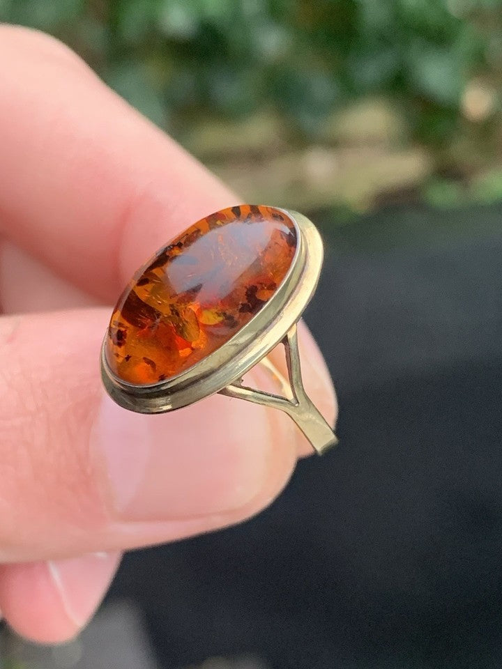 8金天然琥珀の大型ヴィンテージリングを販売いたします。