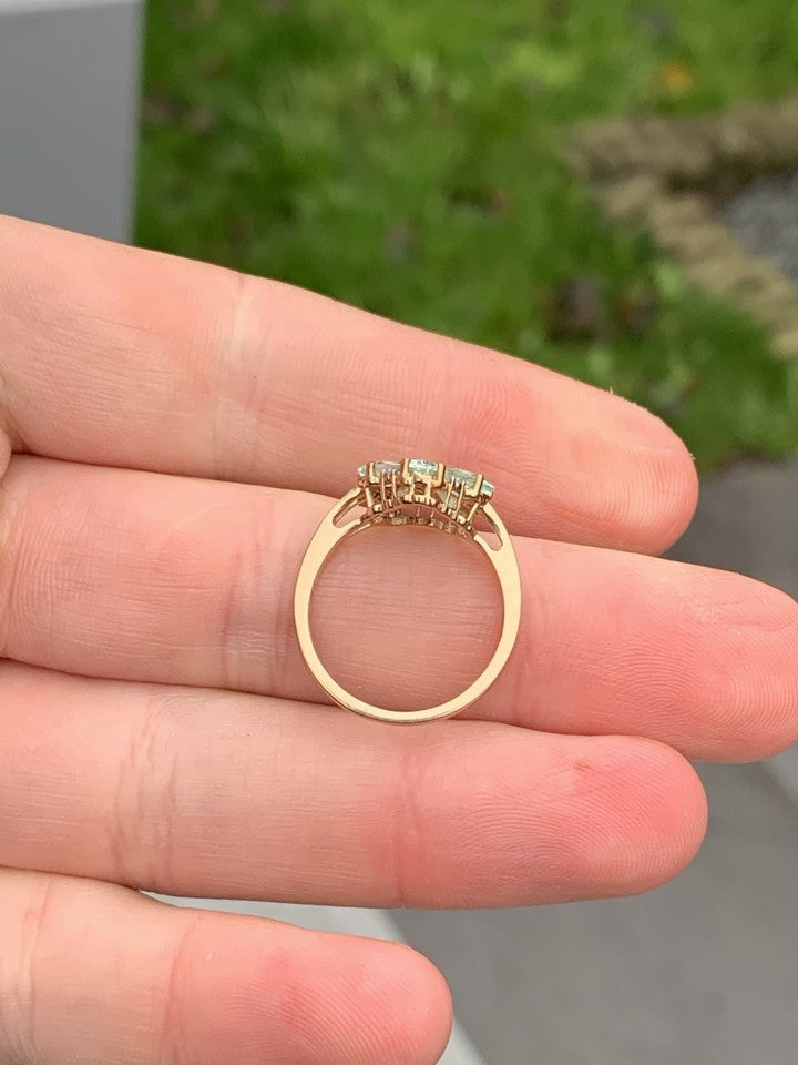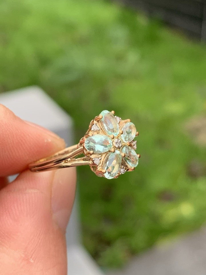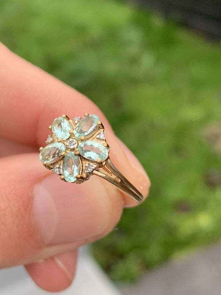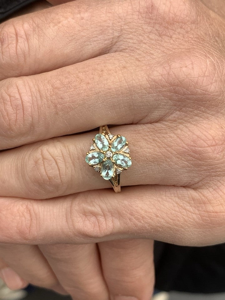 9金製アクアマリンとダイヤモンドのクラスターリングを販売いたします。