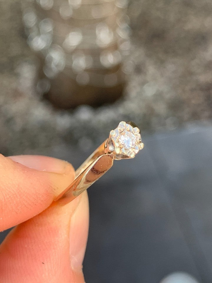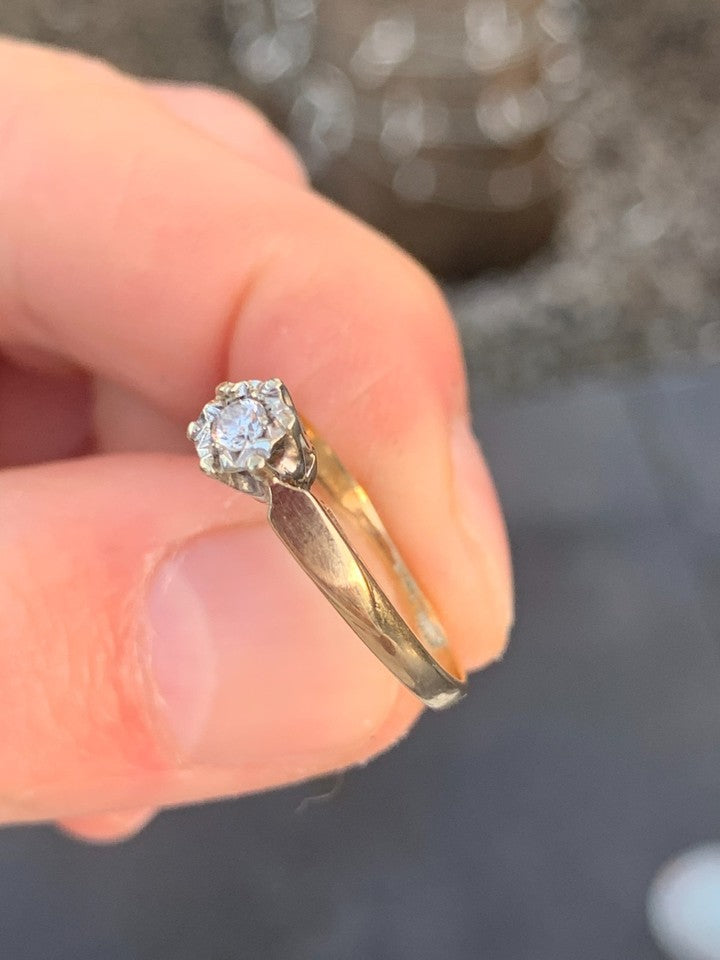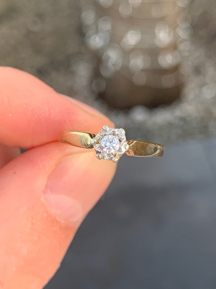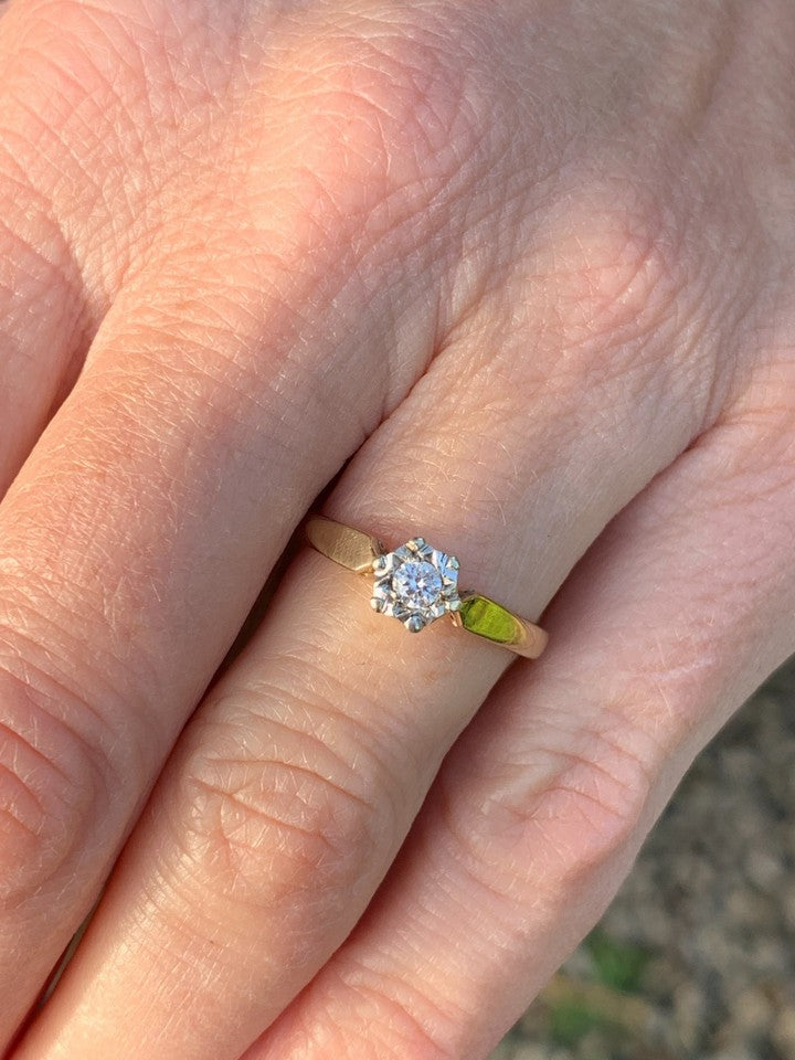 9金イエローゴールドとホワイトゴールドの美しいダイヤモンドソリテールリングを販売いたします。