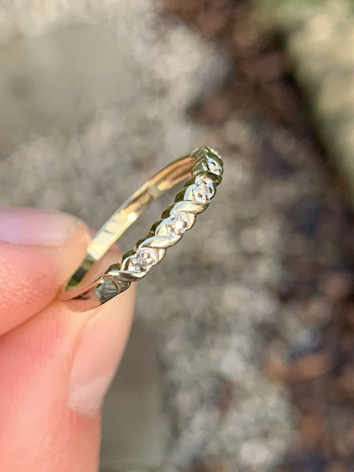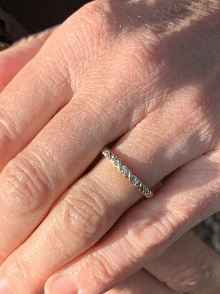 表面には約1ポイントの輝くダイヤモンドが2石セットされています。