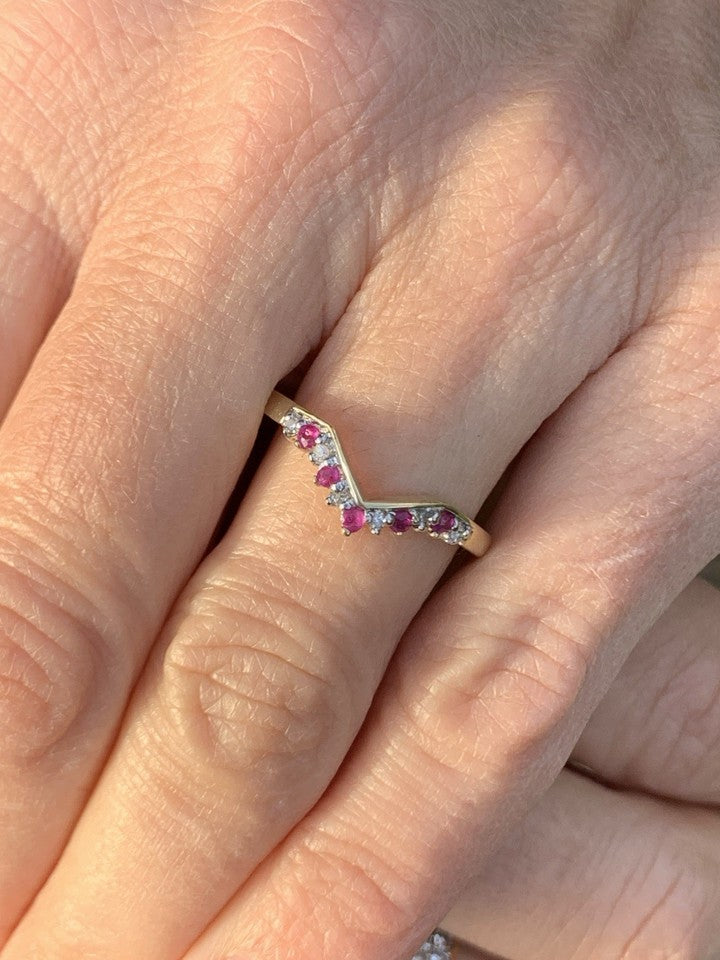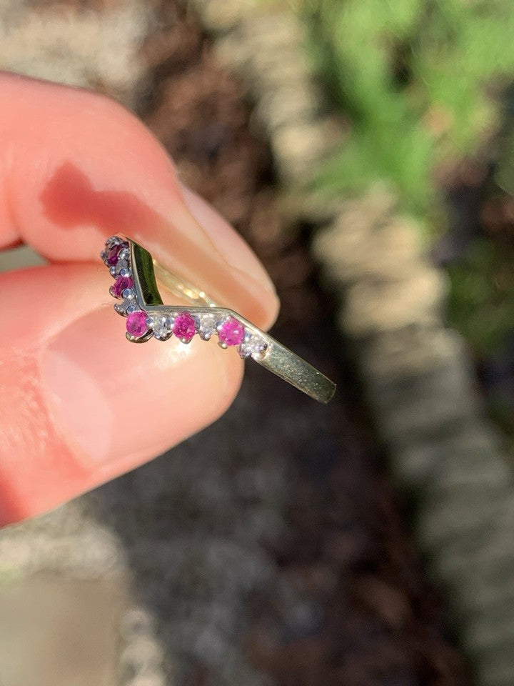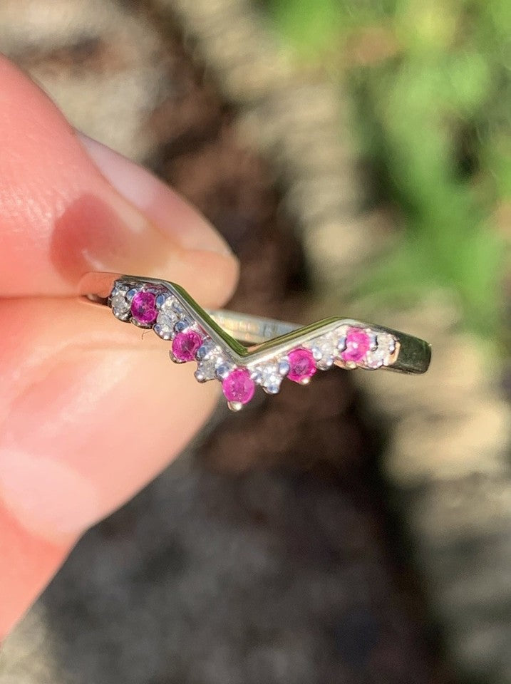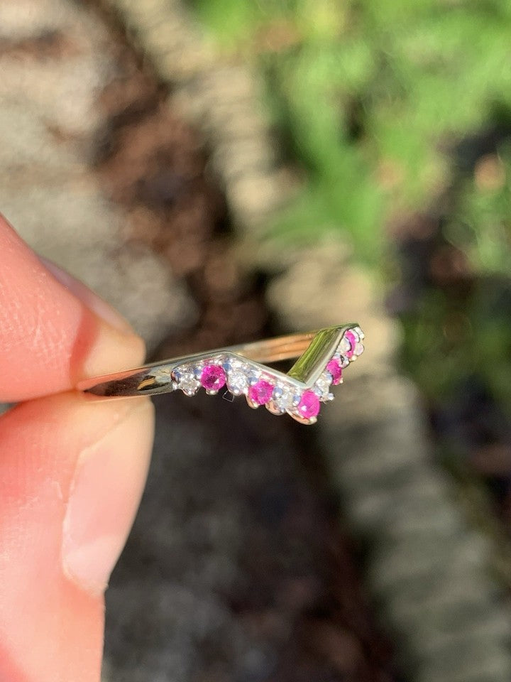 9金ダイヤモンド&ルビーウィッシュボーンリングを販売いたします。