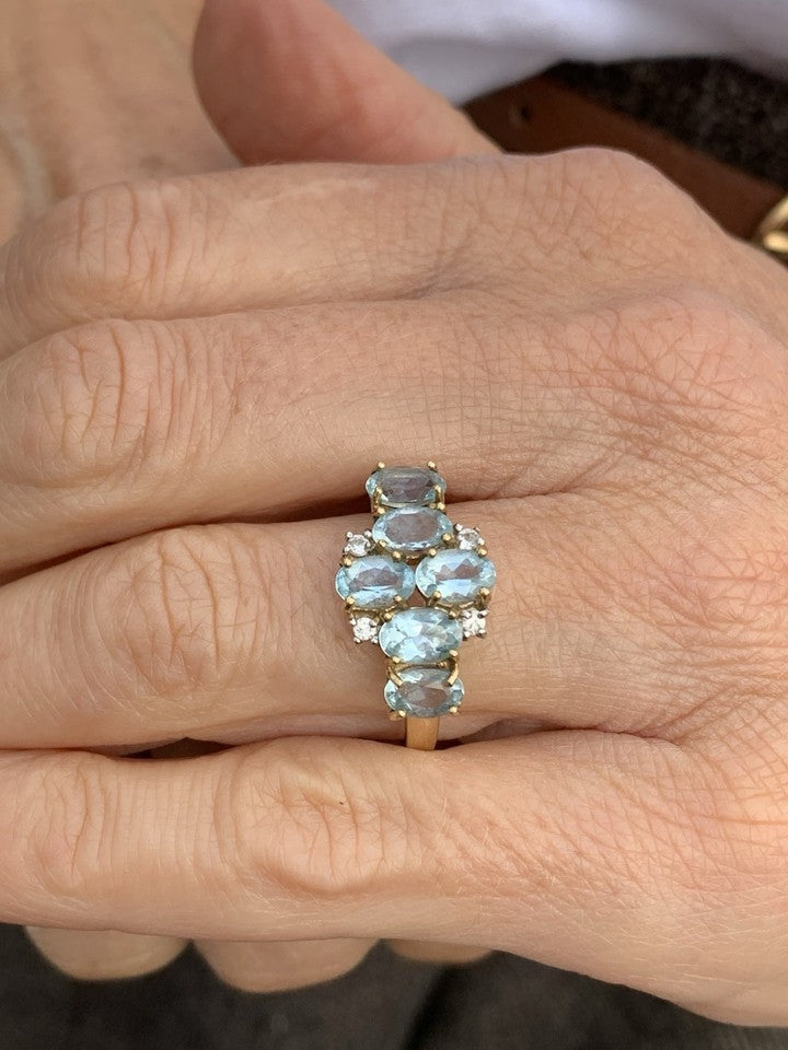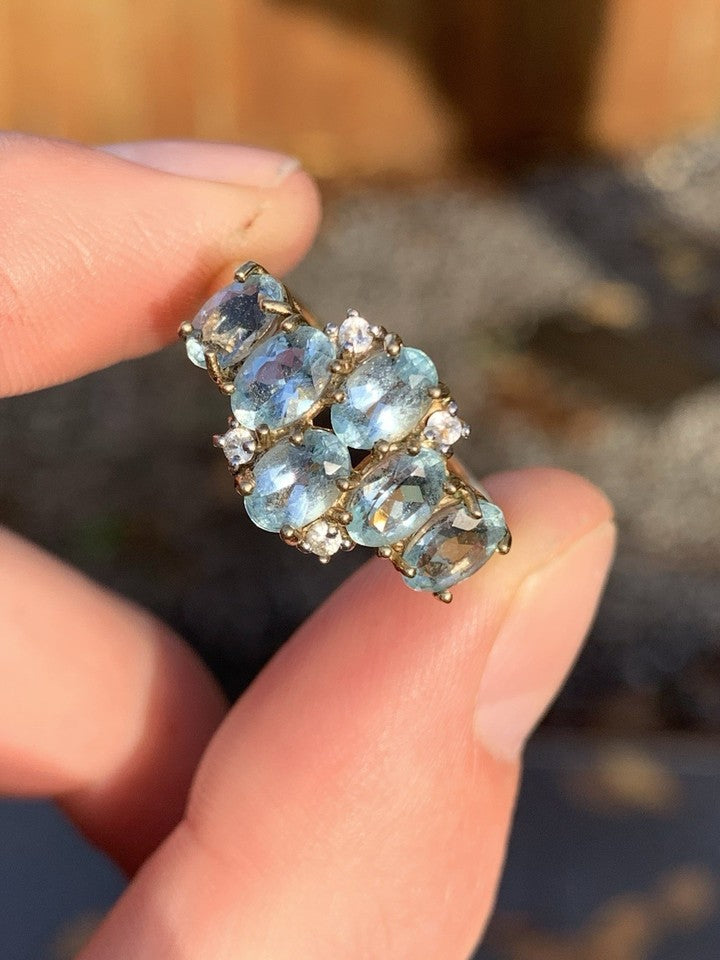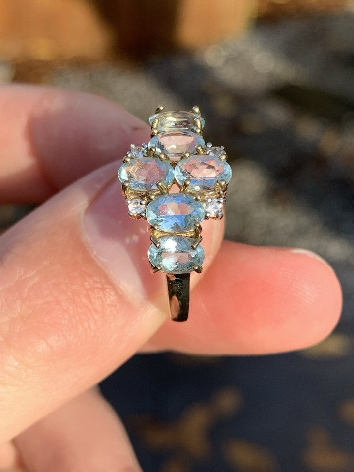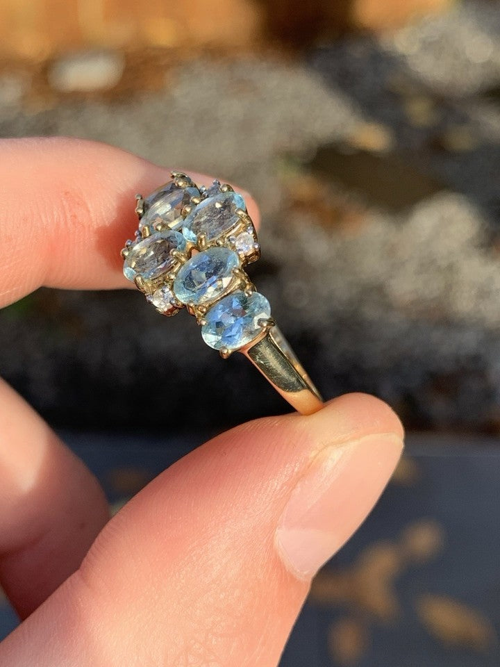 9ct ゴールド ブルー & ホワイト トパーズ ラージ クラスタリング 3.2 グラム