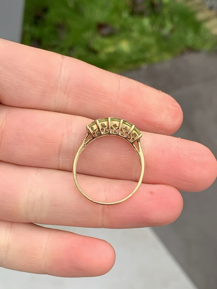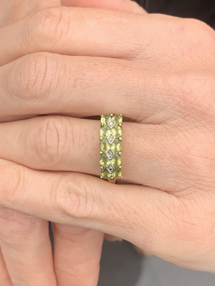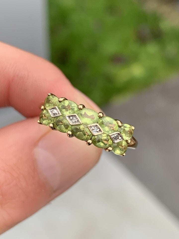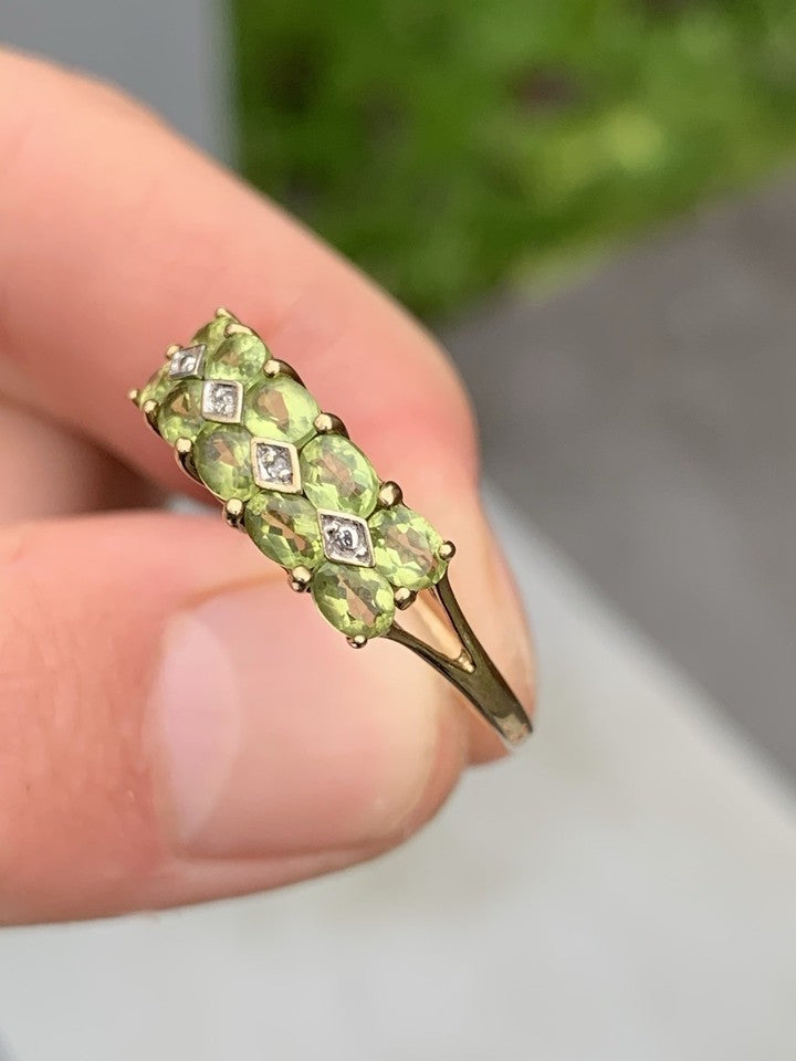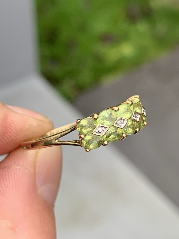 9金ペリドットとダイヤモンドのクラスターリングを販売いたします。