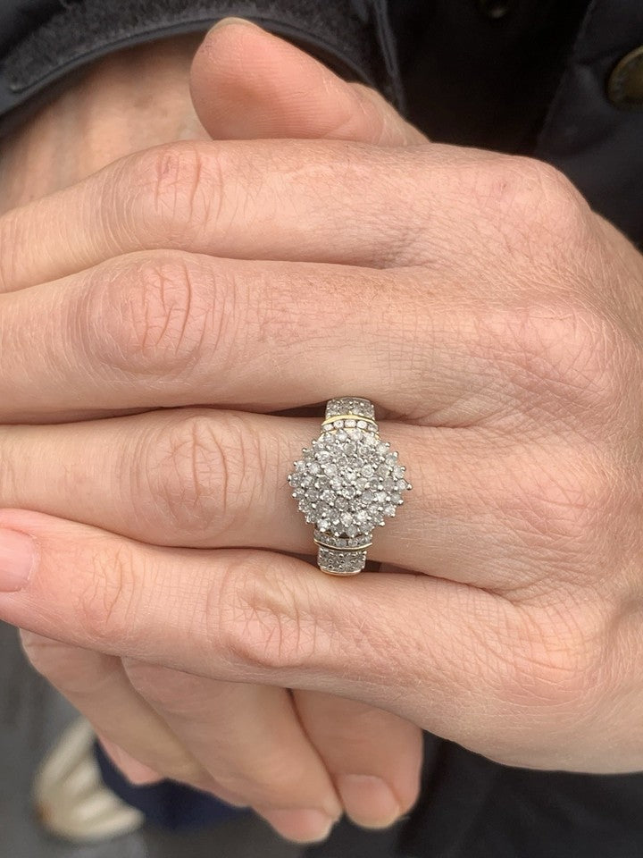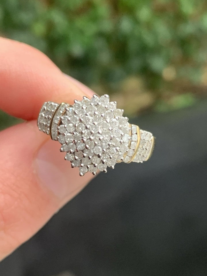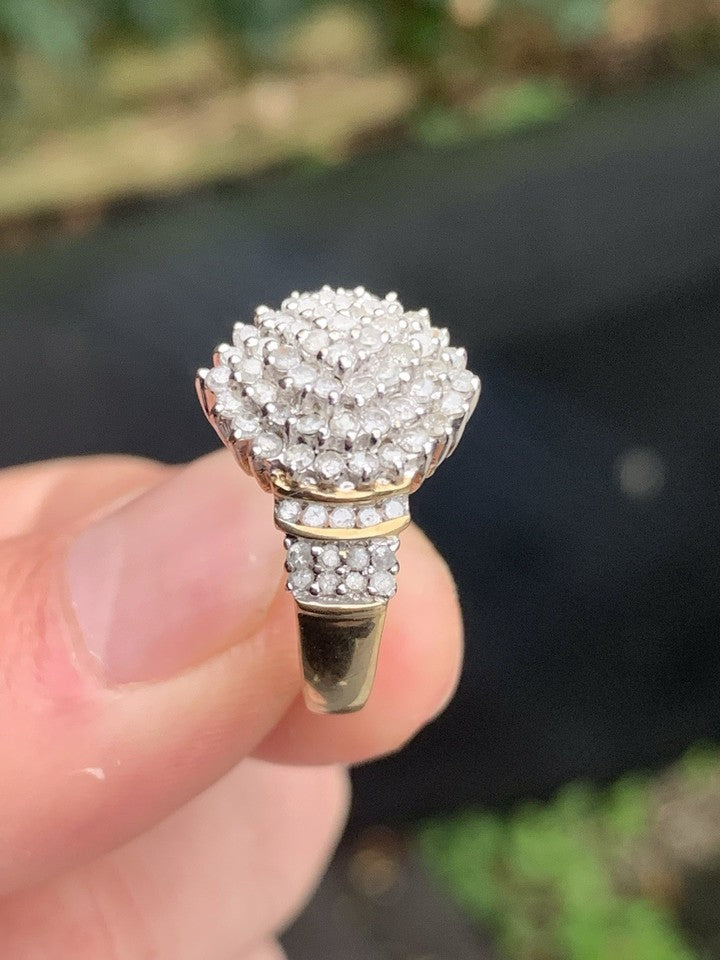 9金製 1カラット ダイヤモンド 大型・重量感のあるヴィンテージクラスターリング(重量6グラム)を販売いたします。