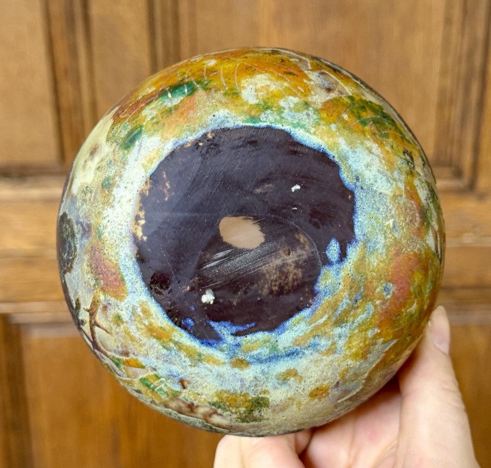 枯葉の部分をご覧頂きたいのですが、オレンジベースのガラスに黄色や紫の色が所々見えますよね。