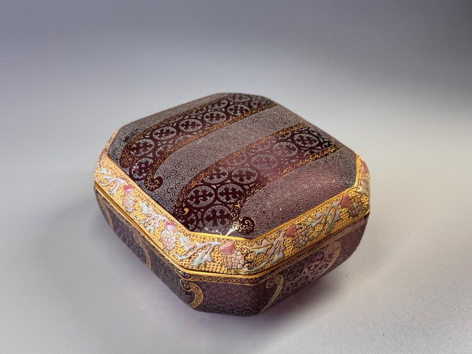 私が一般的に知るような、色ガラスではなく初期の頃はこのように透明のエナメルガラスに金彩で装飾をする簡素なものでした。