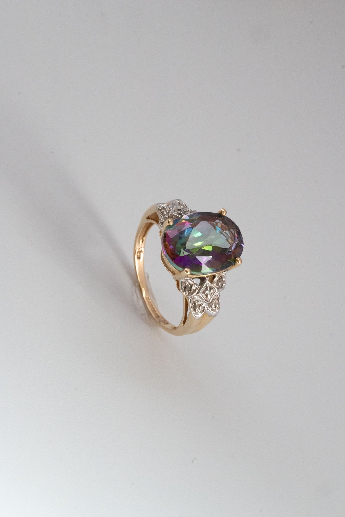 1970年代後半、自由でエネルギッシュな時代の空気を纏って生まれた、ミスティックトパーズのヴィンテージ・リングです。