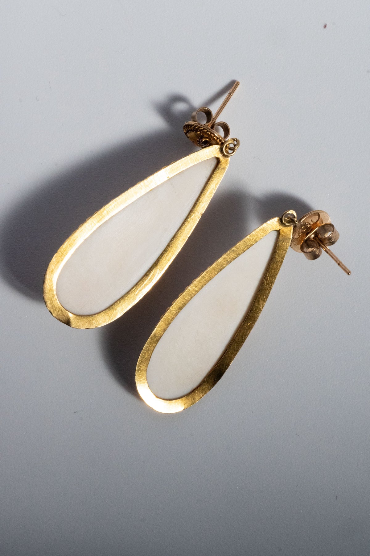 一般的に軽量に作られることが多いアンティークピアスにおいて、この重量感は、かつての英国で限られた期間(1854年-1932年)のみ流通した希少な「15金(15ct Gold)」を贅沢に使用している証です。
