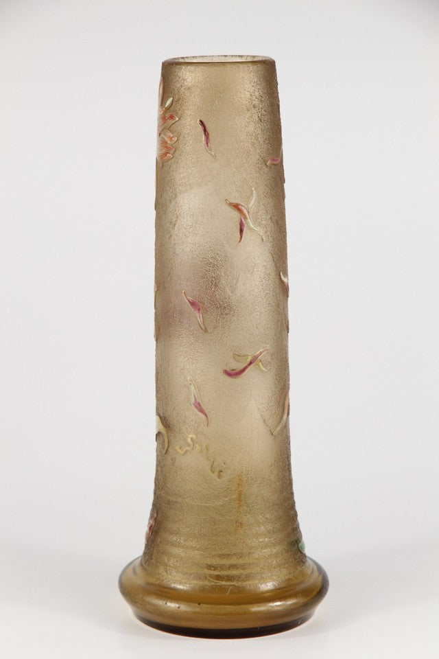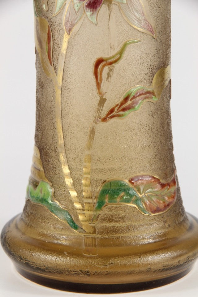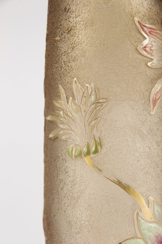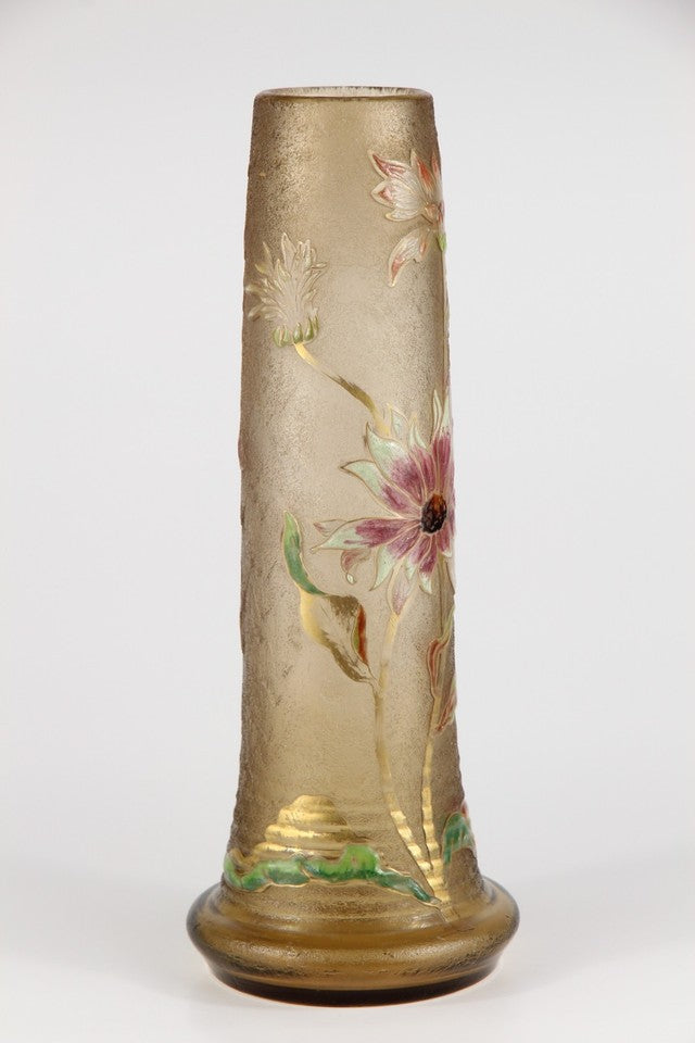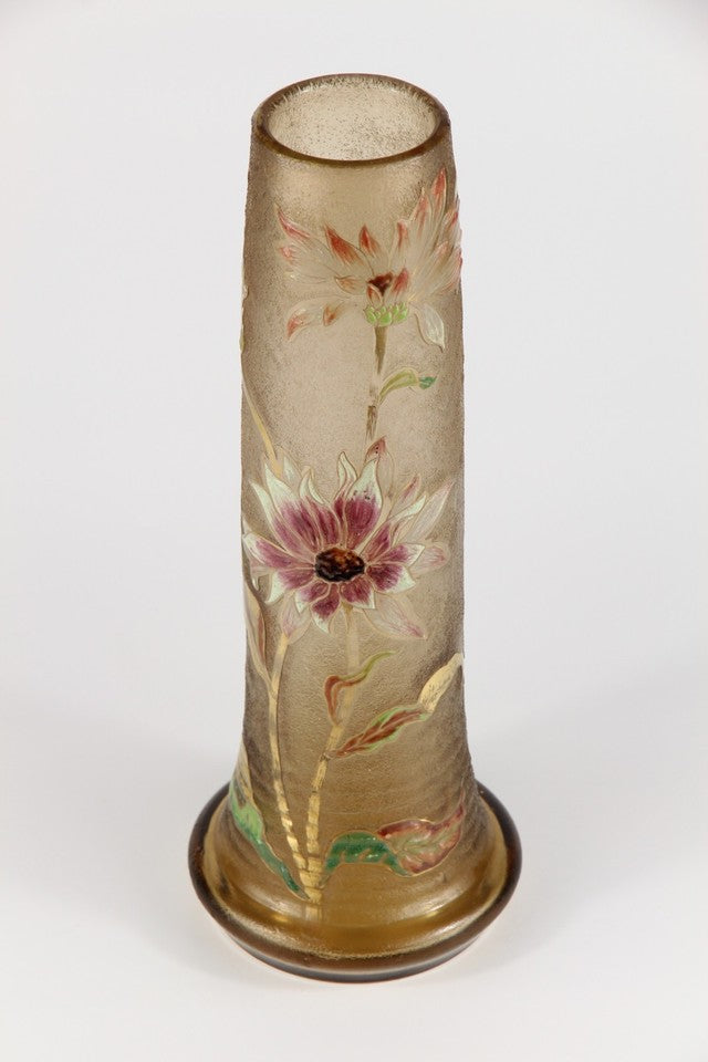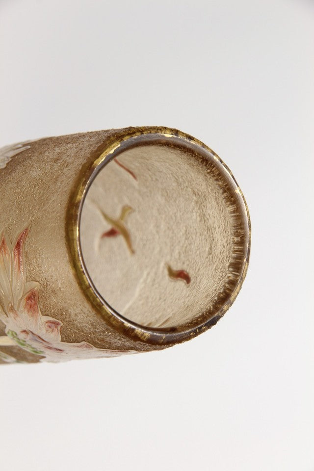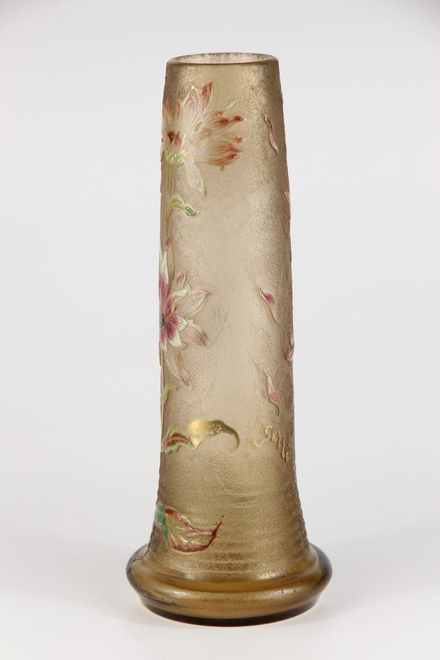 エミールガレの初期作品 エナメルガラスを使ったダリアの花が描かれたアールヌーボー花瓶