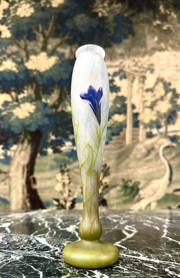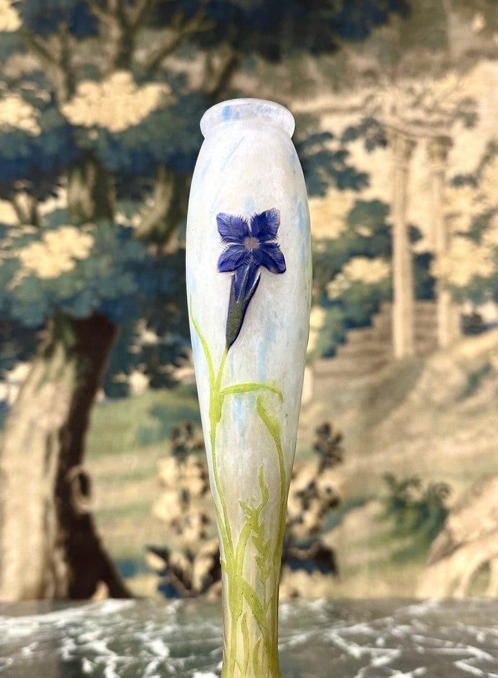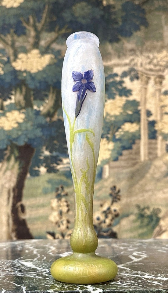ドーム兄弟 ゲンチアナの装飾が施された珍しい花瓶、アール・ヌーヴォー様式でございます☺
