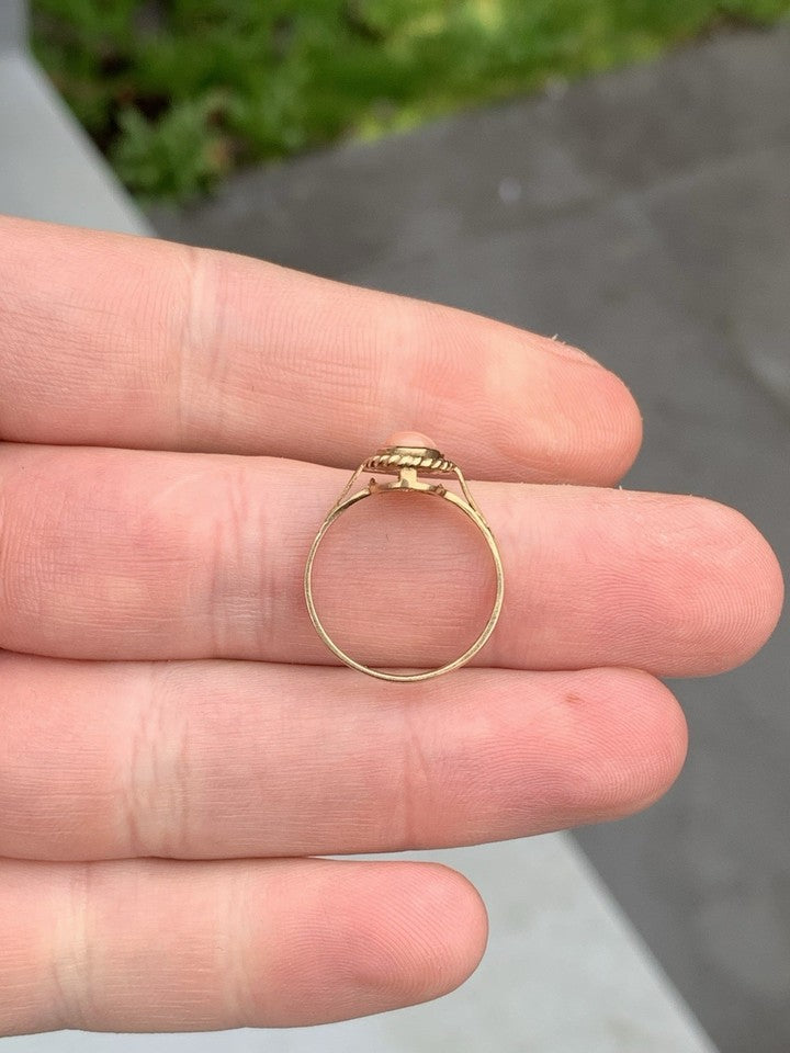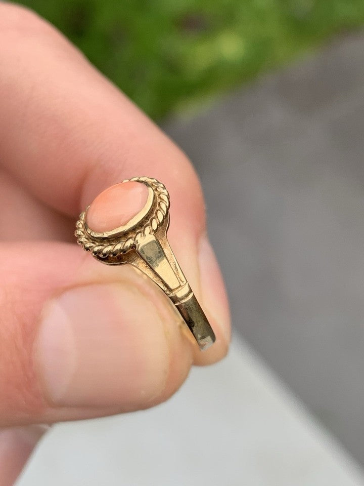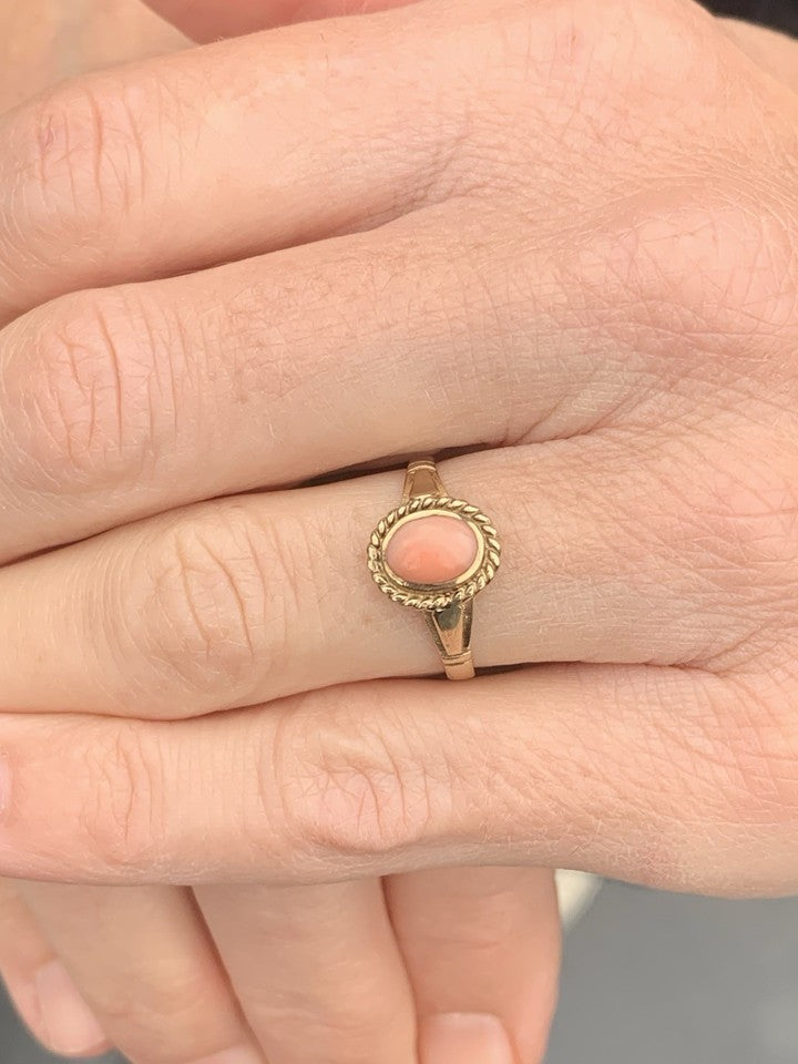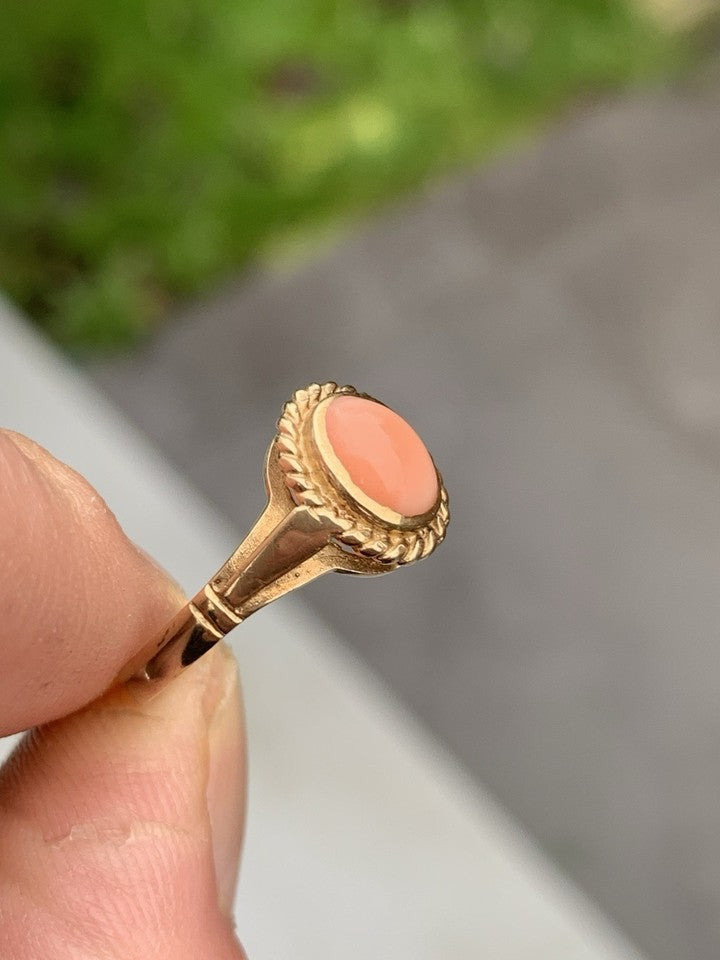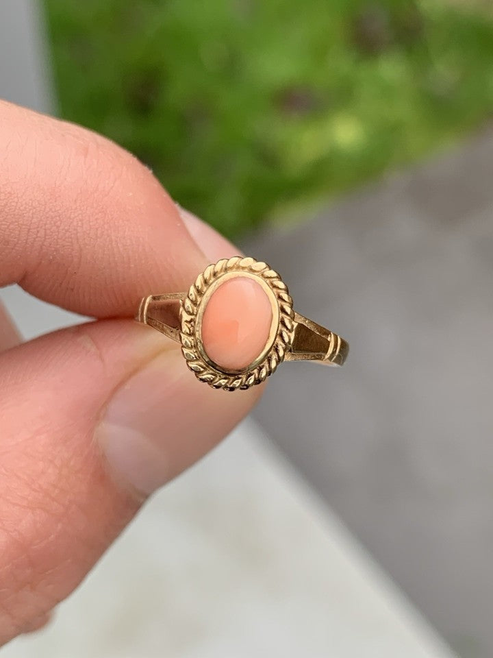 9ct ゴールド エンジェル コーラル ヴィンテージ ソリティア リング 1.6 グラム