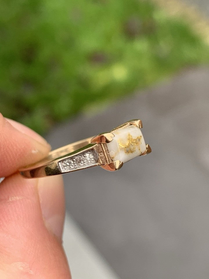 9金ゴールド、ゴールドストーン、ダイヤモンドを使用したヴィンテージリングを販売いたします。