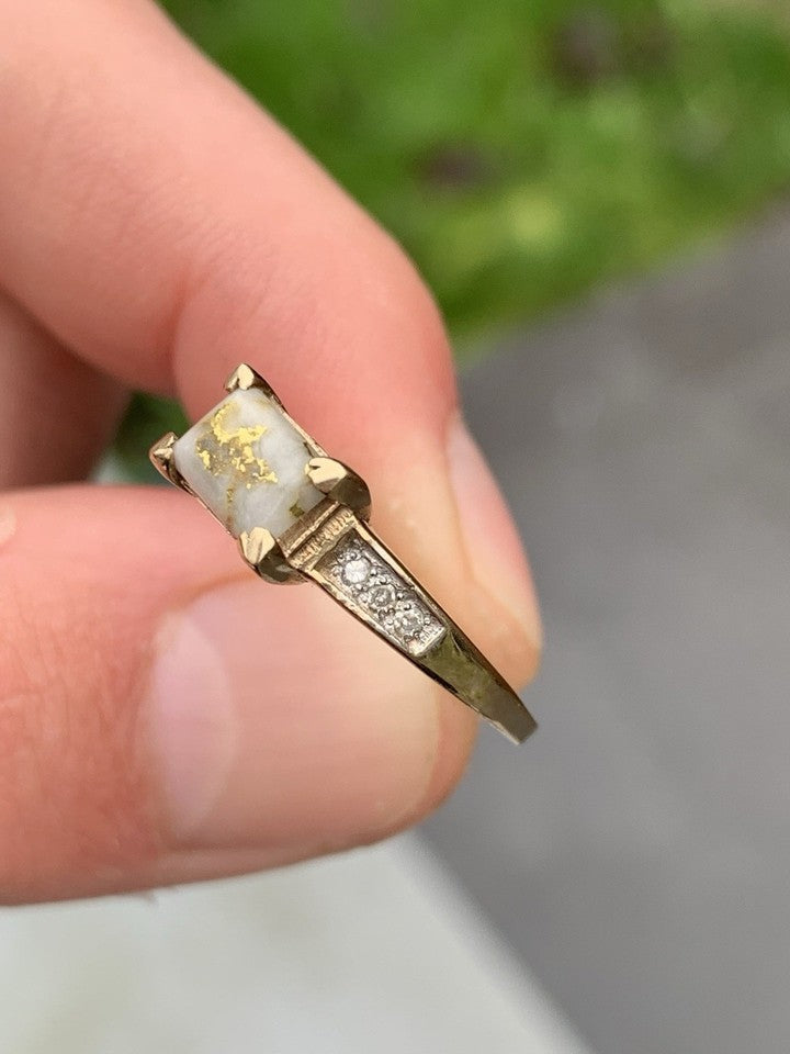 9ct ゴールド ストーン ダイヤモンド ヴィンテージ リング