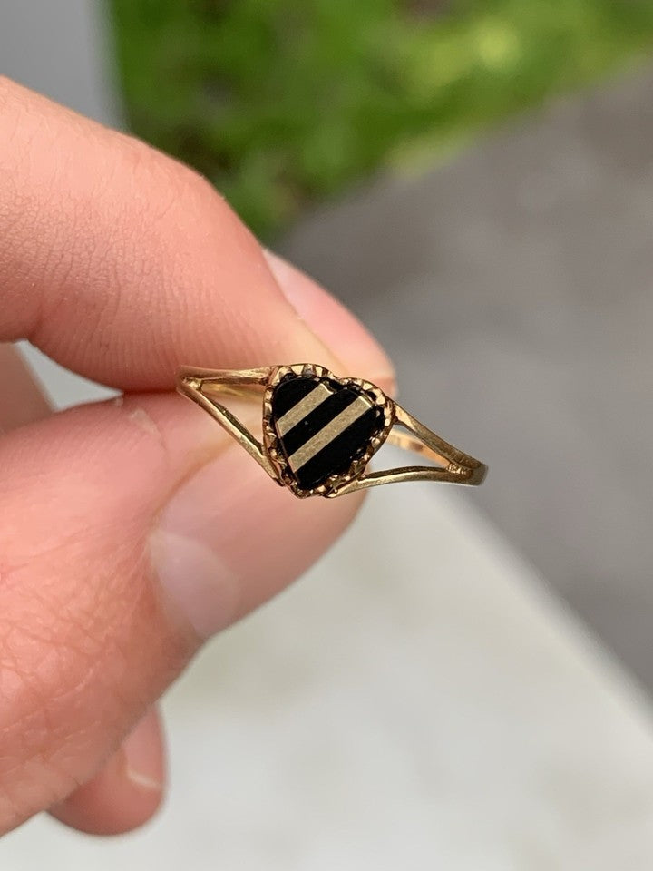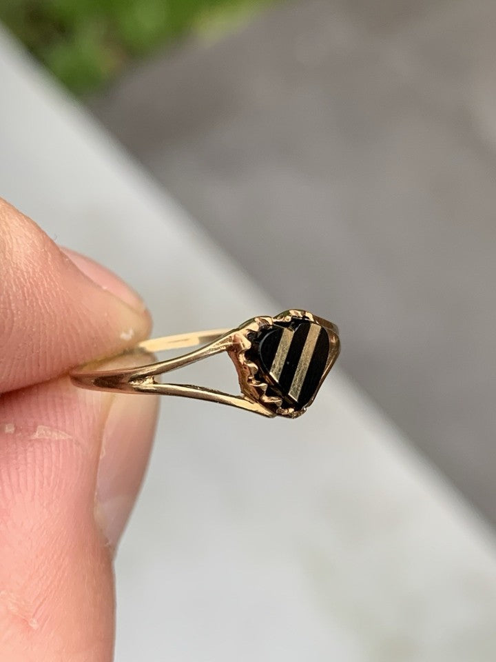 9ct ゴールド ハート ヴィンテージ オニキス リング 1グラム