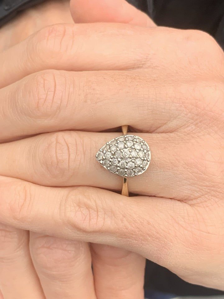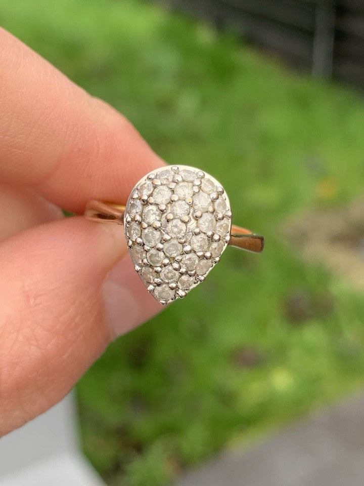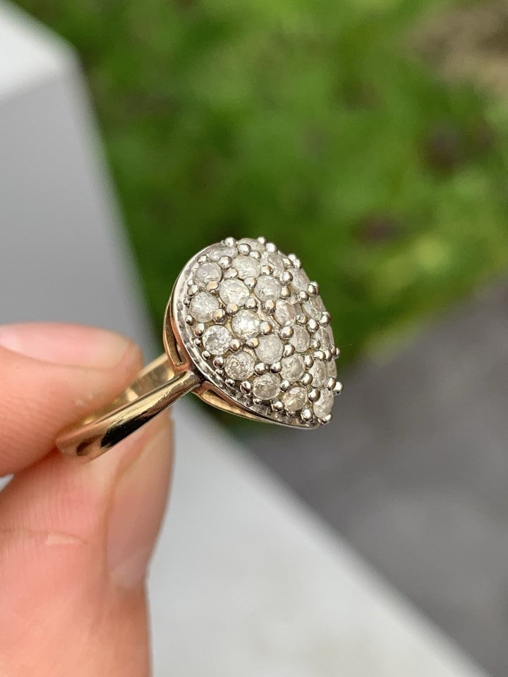 9ct ゴールド 1ct ダイヤモンド ラージ ペア ドロップ クラスタリング 3.8グラム