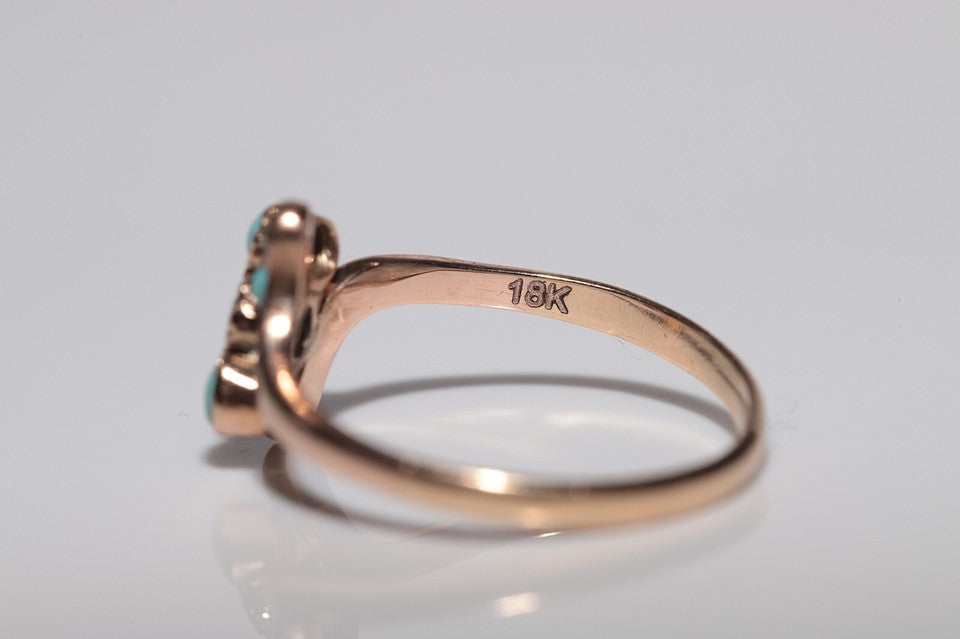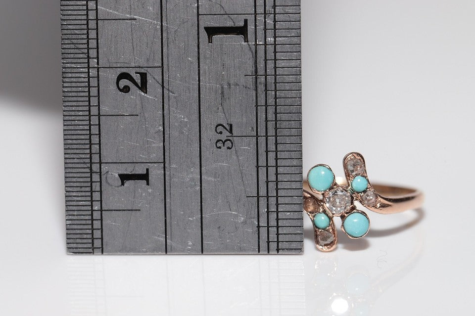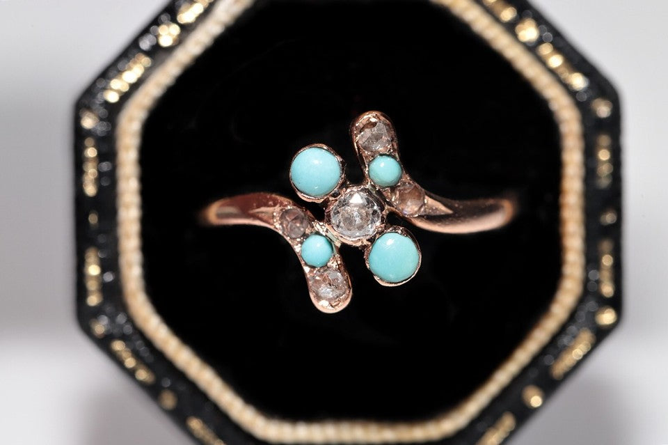 アンティーク 1900年代頃 18Kゴールド手作り 天然ダイヤモンドとターコイズリング
