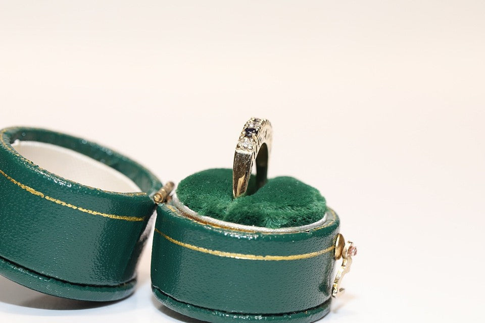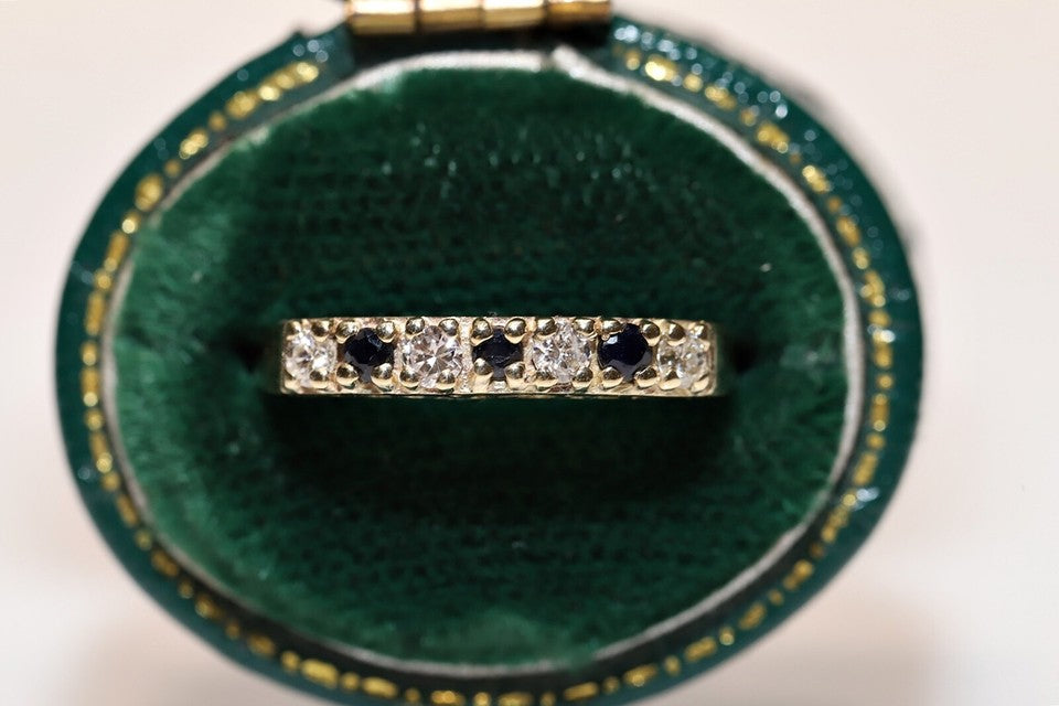 9K、ナチュラルダイヤモンド、サファイアが使用された、素晴らしいヴィンテージリングです。