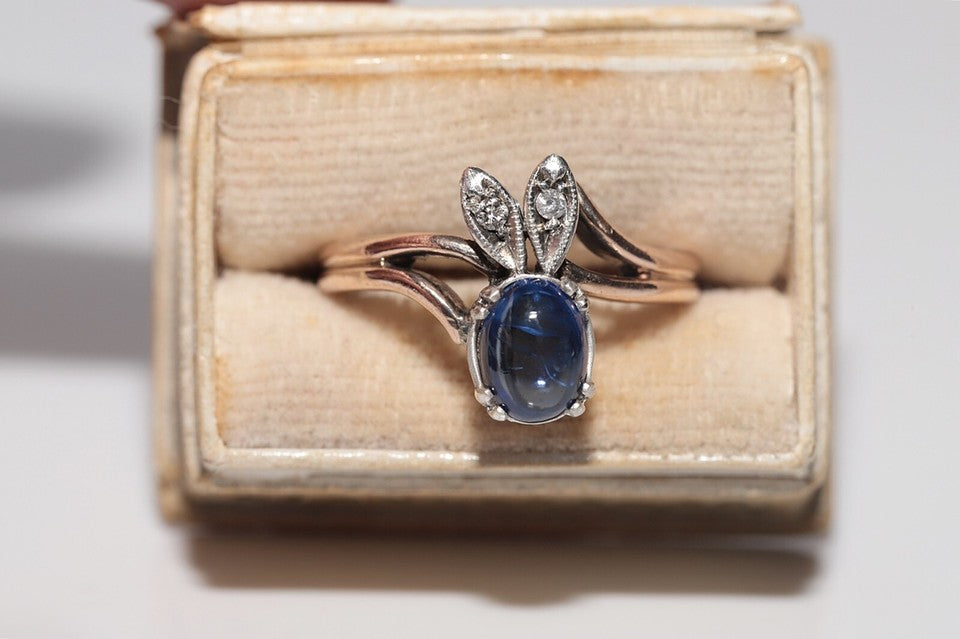 9K、ナチュラルダイヤモンド、サファイアが使用された、素晴らしいヴィンテージリングです。