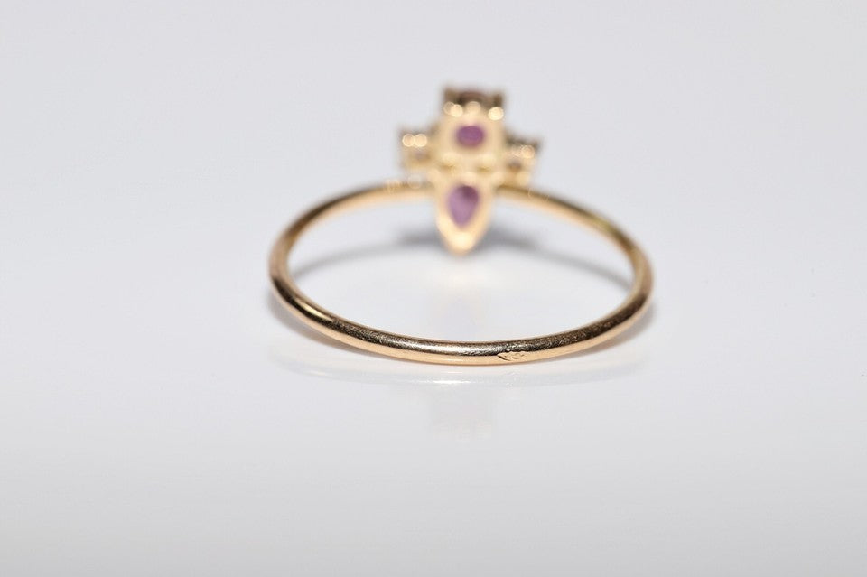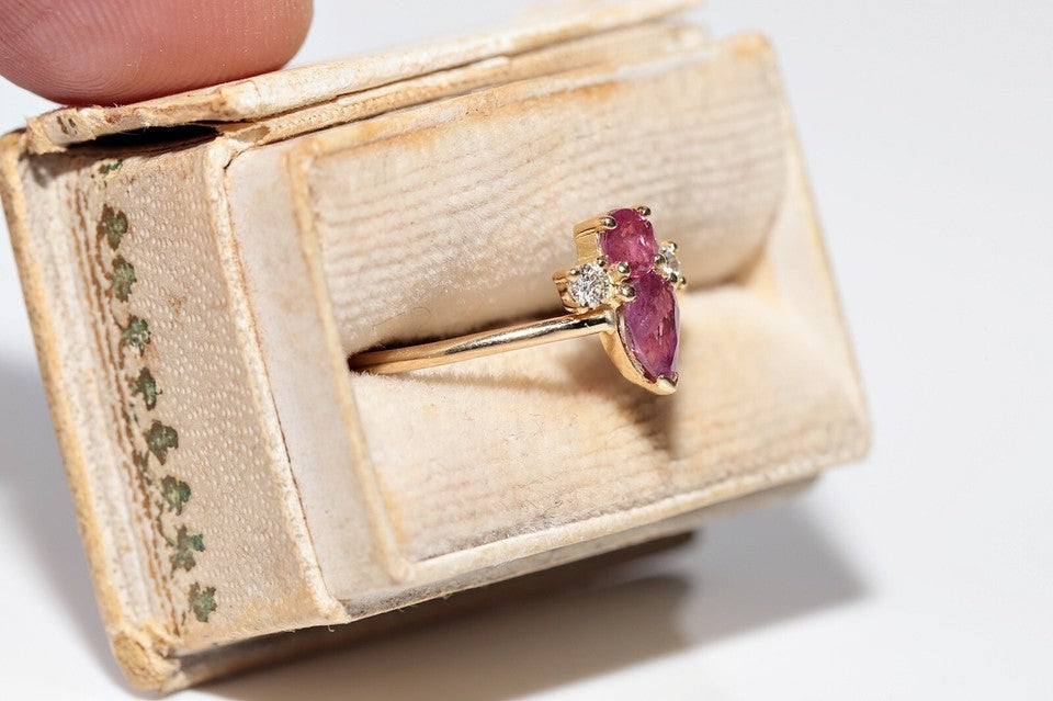 18K、ナチュラルダイヤモンド、ルビーが使用された、素晴らしいヴィンテージリングです。