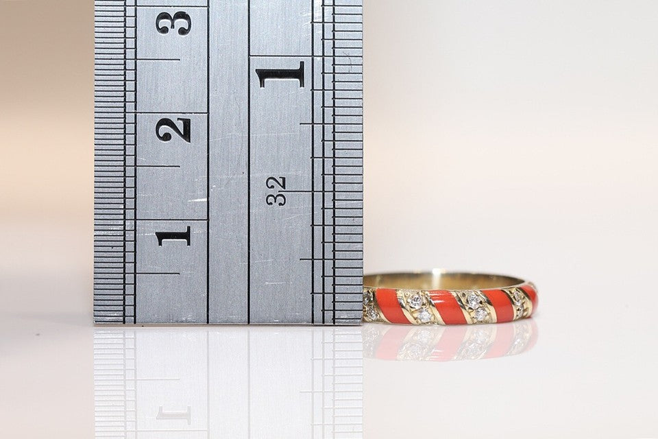 新品14Kゴールド天然ダイヤモンド装飾エナメルリング