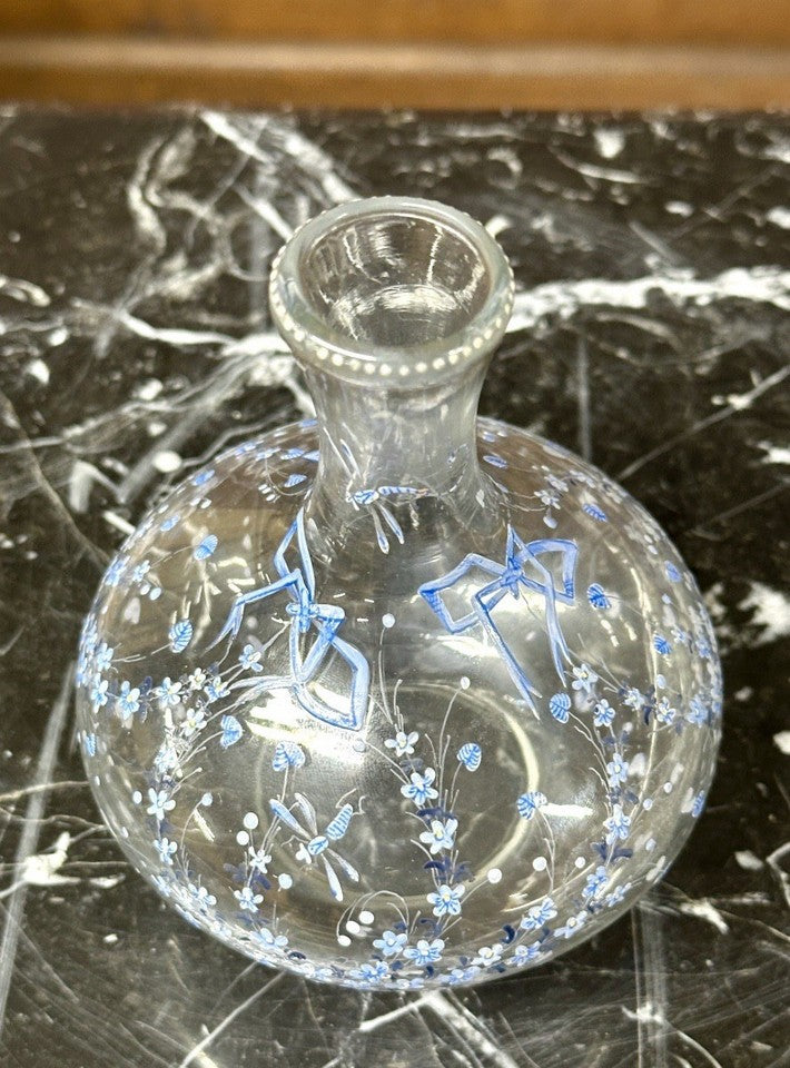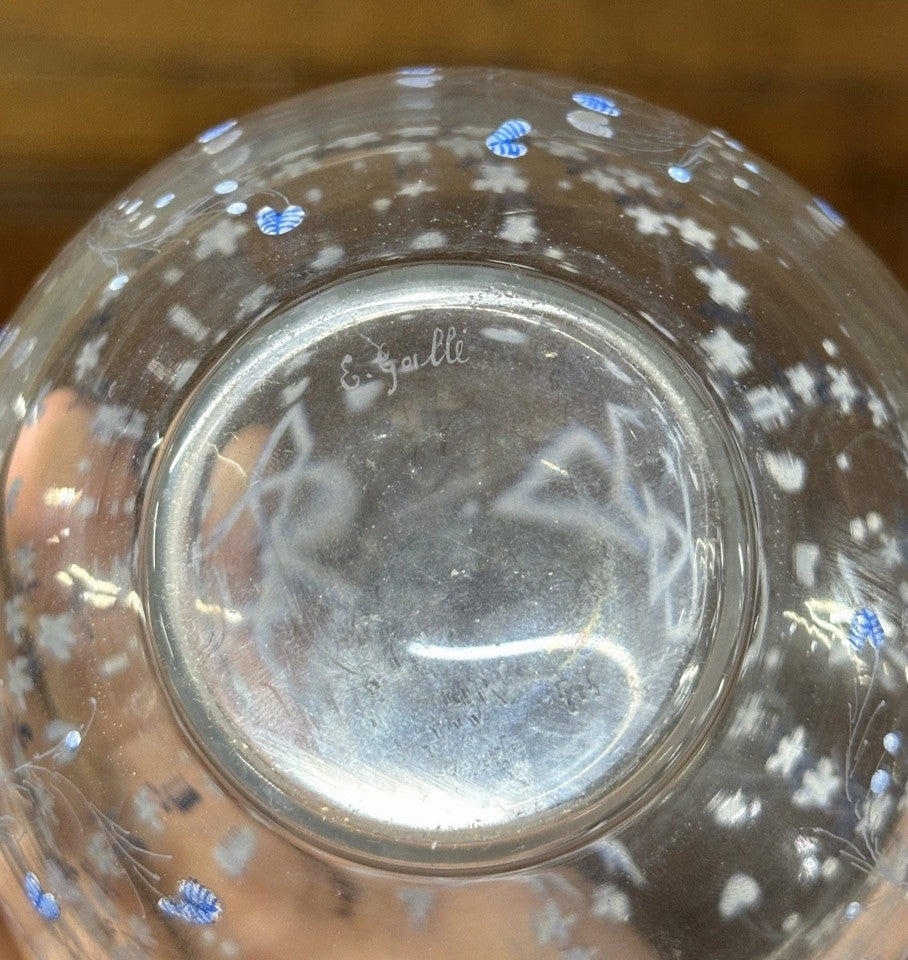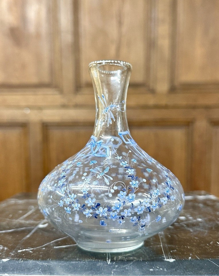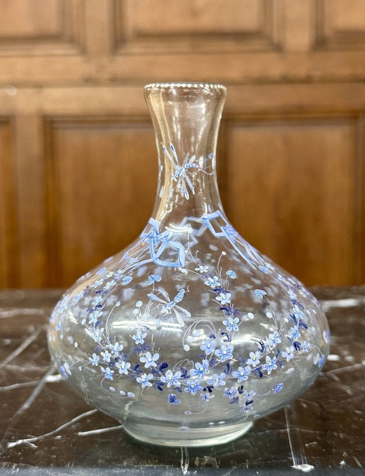 クリスタル工房期 エミール・ガレ - アール・ヌーヴォー様式の忘れな草とトンボの装飾が施されたエナメル加工の花瓶でございます☺