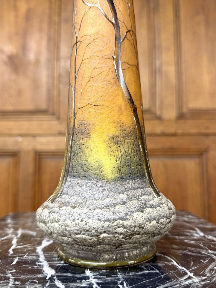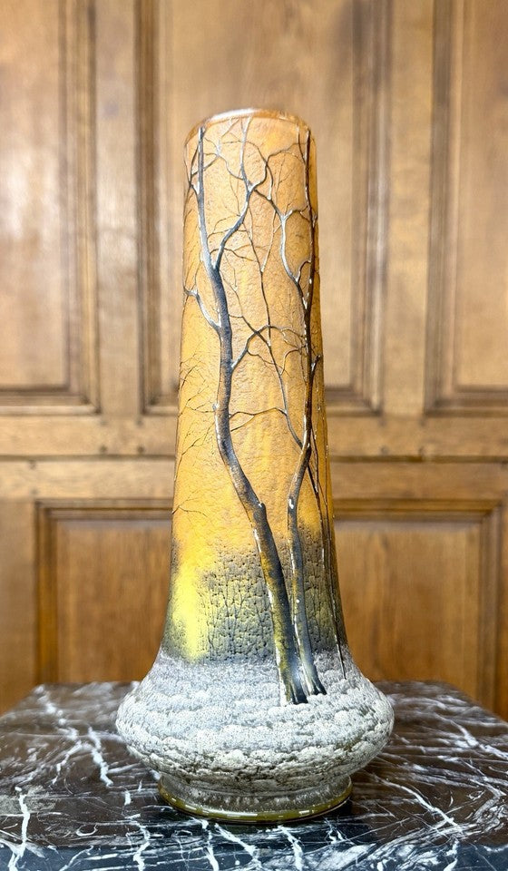 ドーム兄弟(ドームナンシー ) 冬景色が描かれた中型花瓶 アールヌーボー