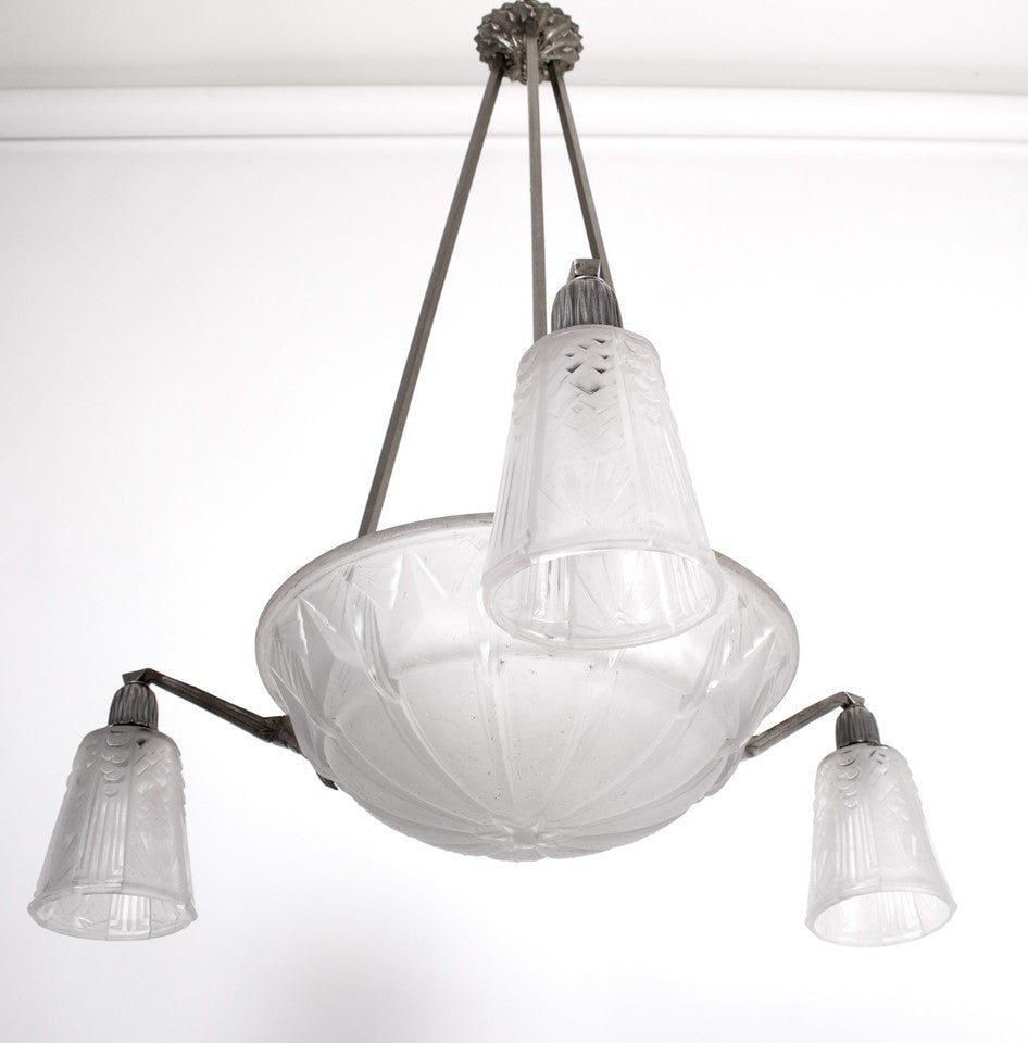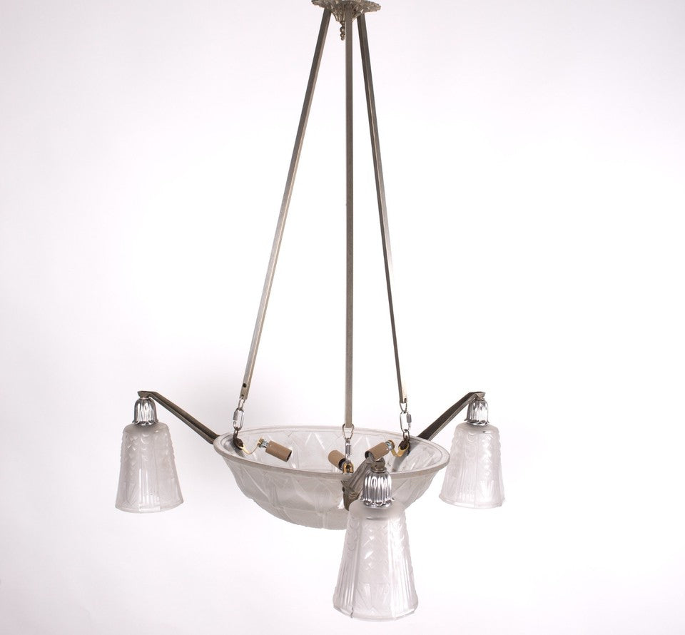このシャンデリアは1920年代後半から1930年代初頭にかけてフランスで製作された、ミューラー兄弟の作品です。