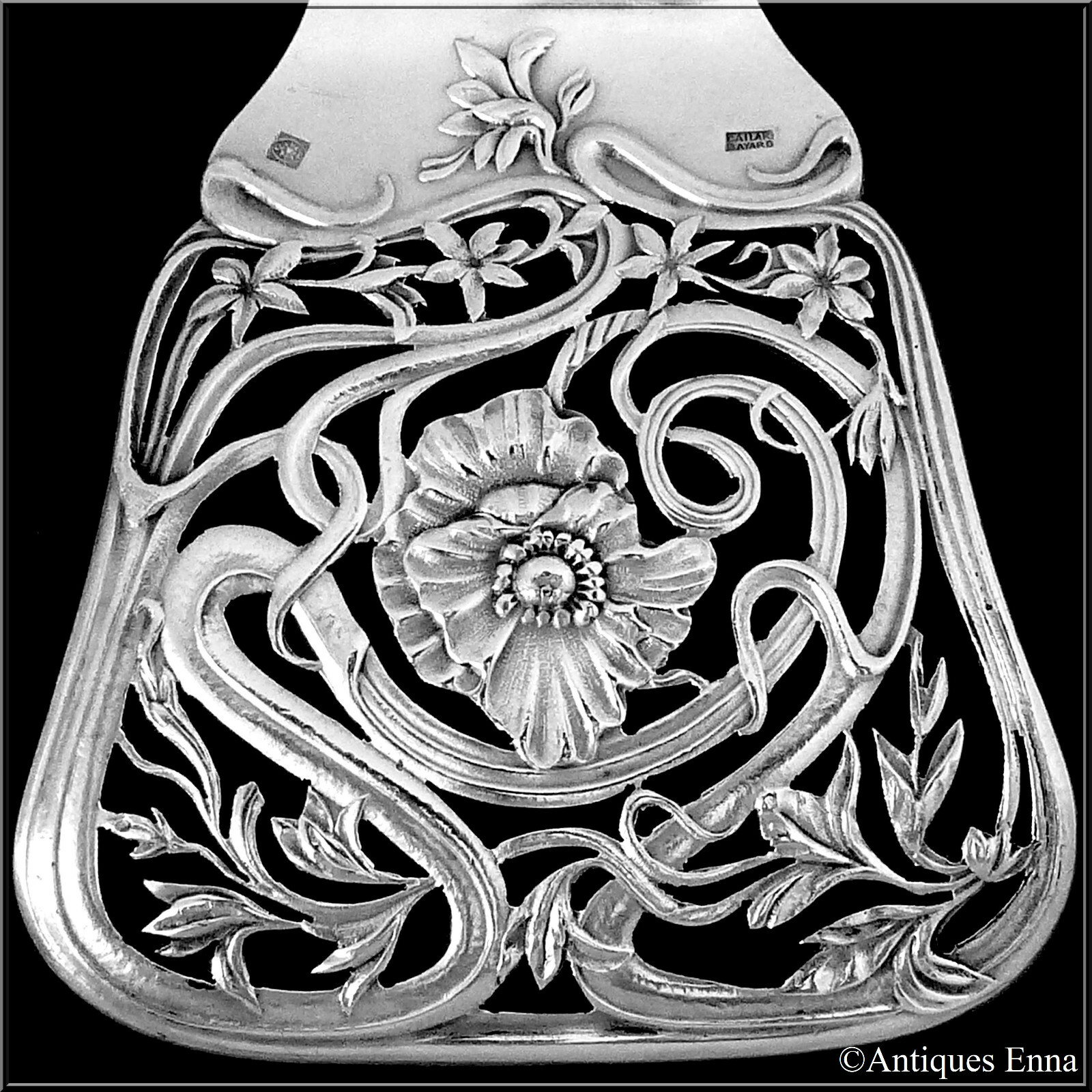 Cailar Bayard French Silver Asparagus Sandwich Tongs, Art Nouveau, Poppy