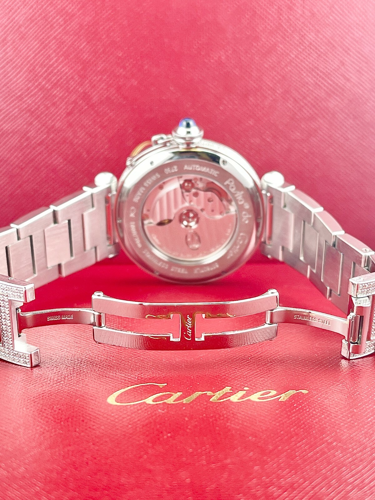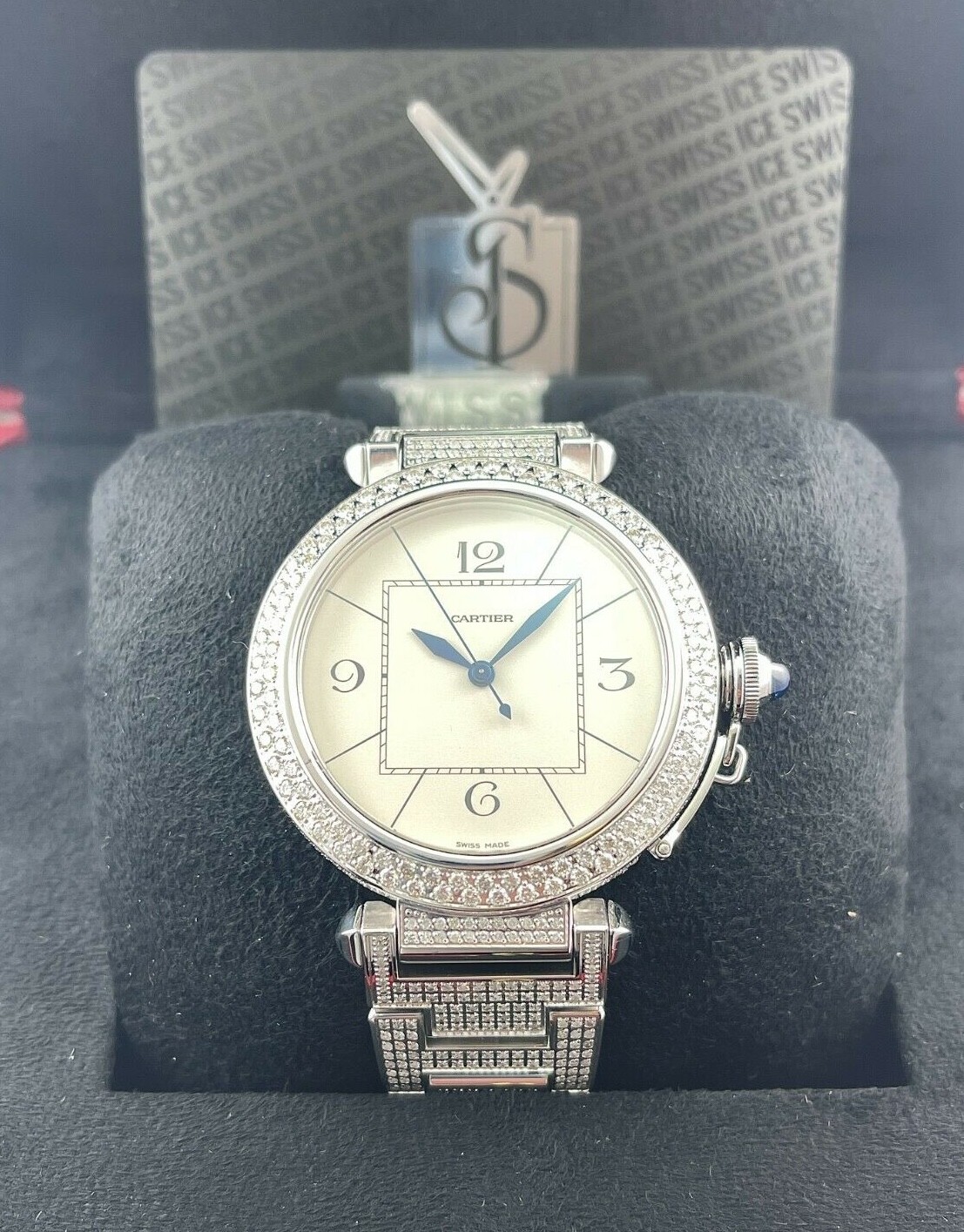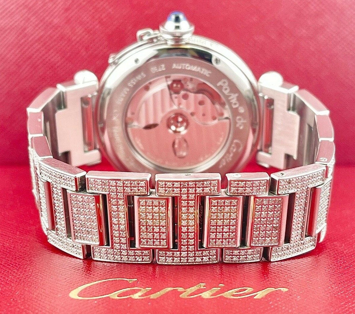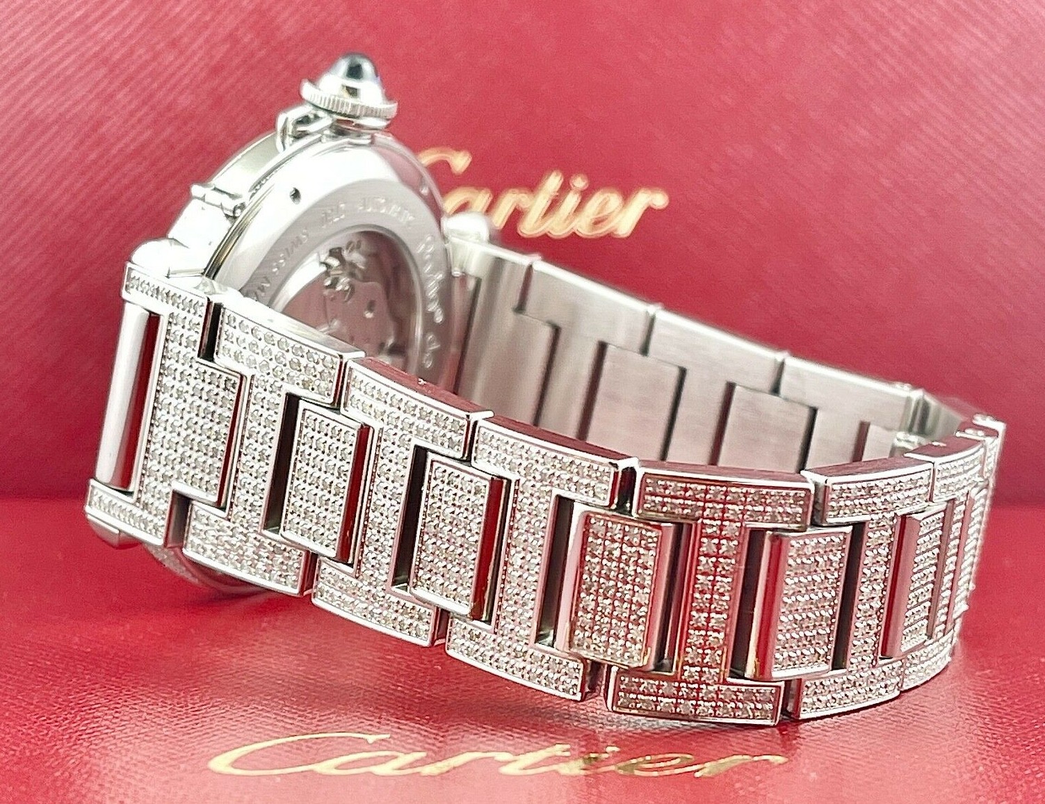 Cartier Pasha 42mm Beige Dial Custom Iced Out 8ct Genuine Diamonds Ref 2730