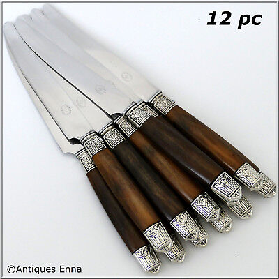 Thiers French Silver & Horn Dinner Knife Set of 12 pc, Art Deco